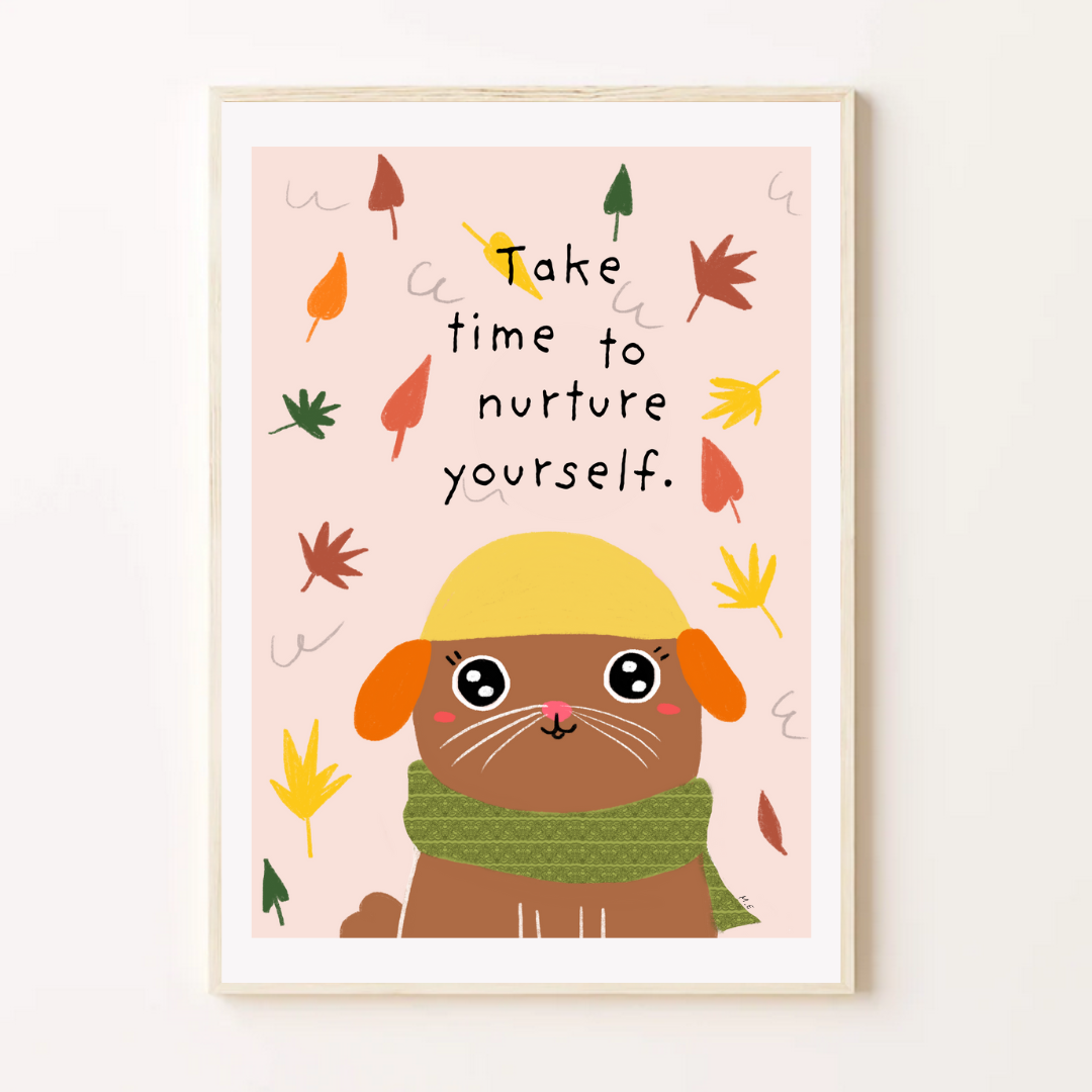 A lovely print for cozy corners, wellness nooks, or for gifting someone in need of a little self-kindness.
