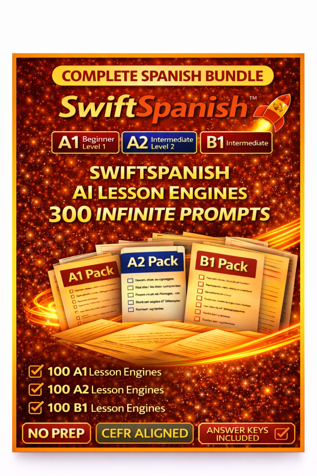 SwiftSpanish Complete Bundle — 300 AI Prompts for A1–B1 Spanish Lessons