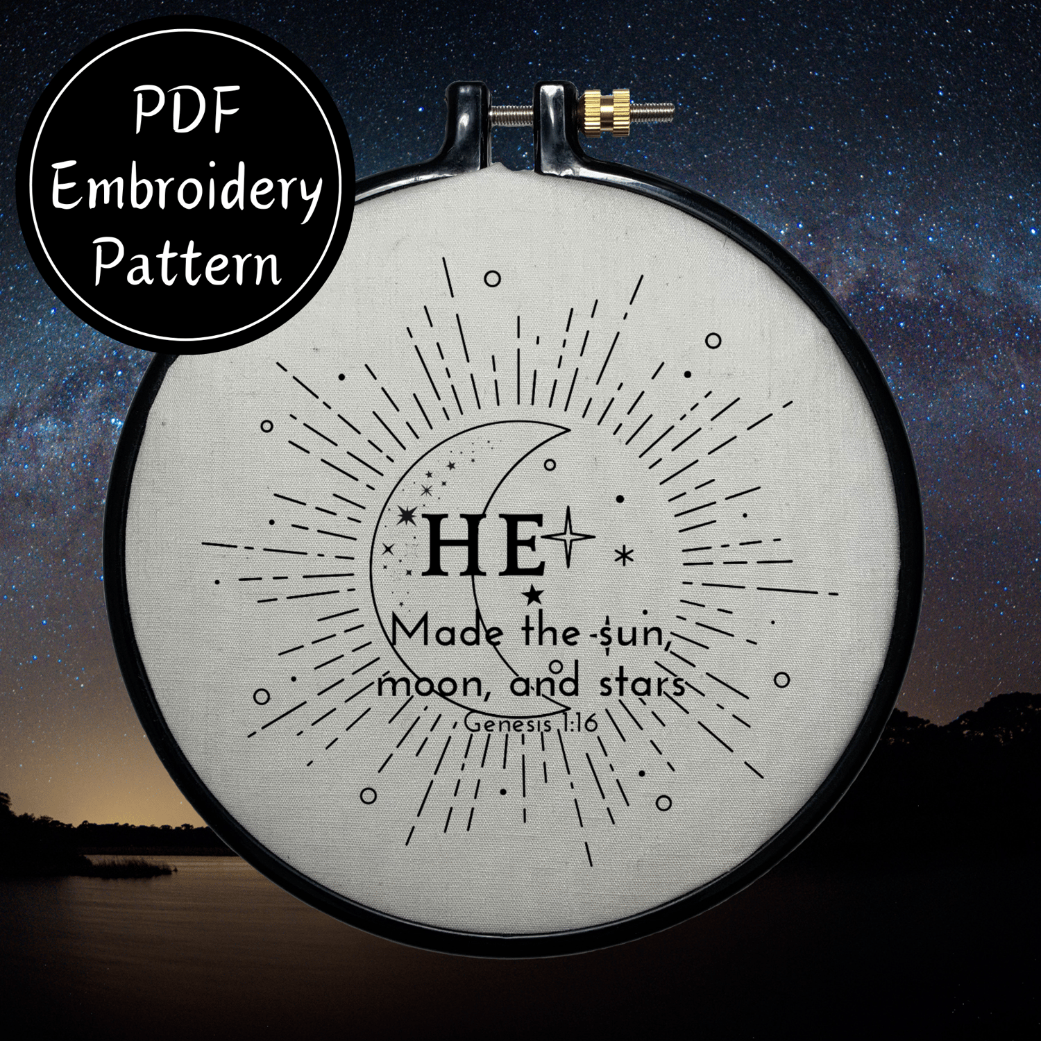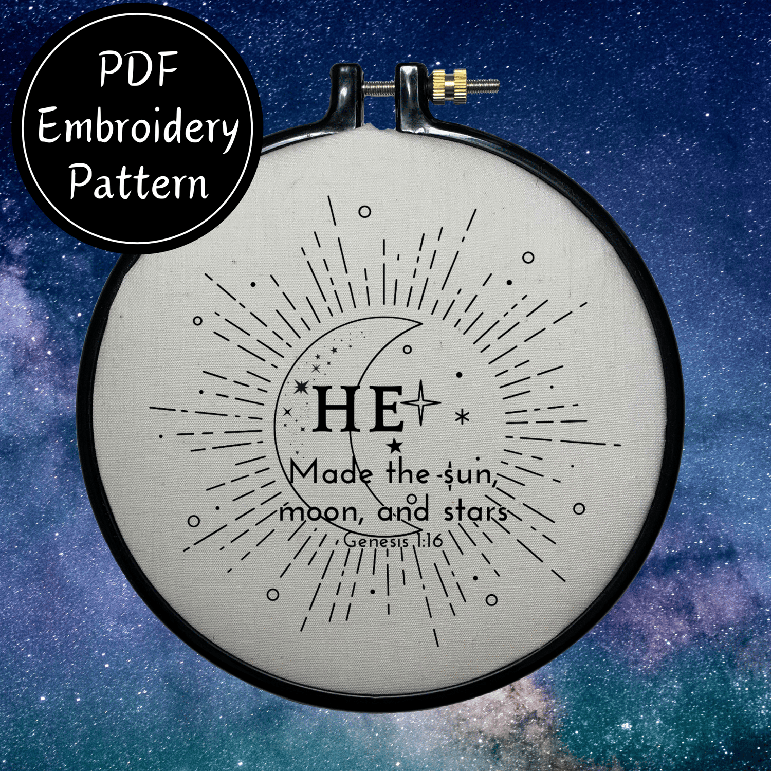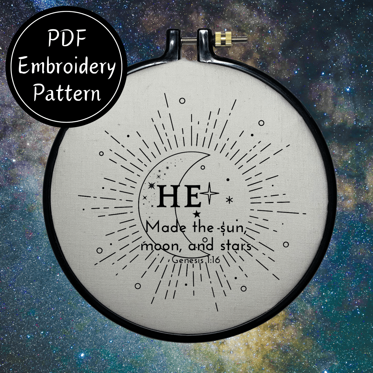 Sun Moon Stars Scripture Hand Embroidery Pattern DIY Embroidery