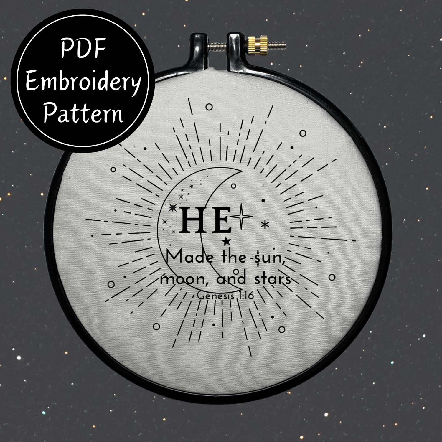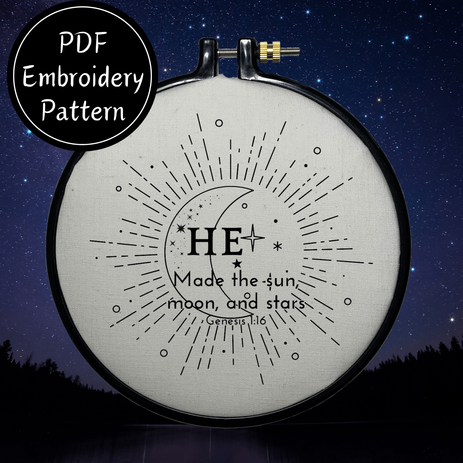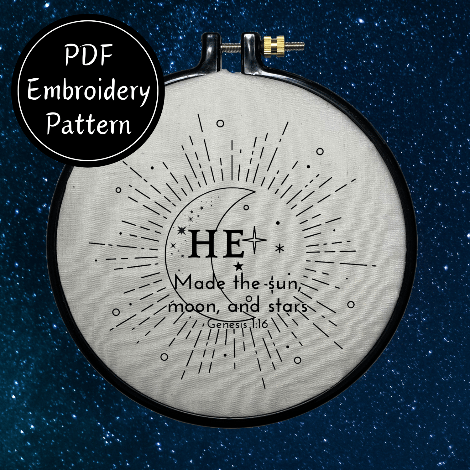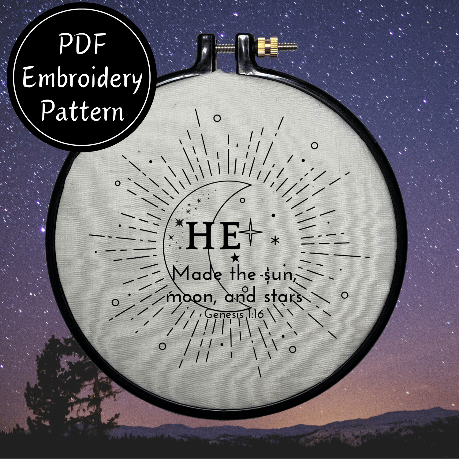 Sun Moon Stars Scripture Hand Embroidery Pattern DIY Embroidery
