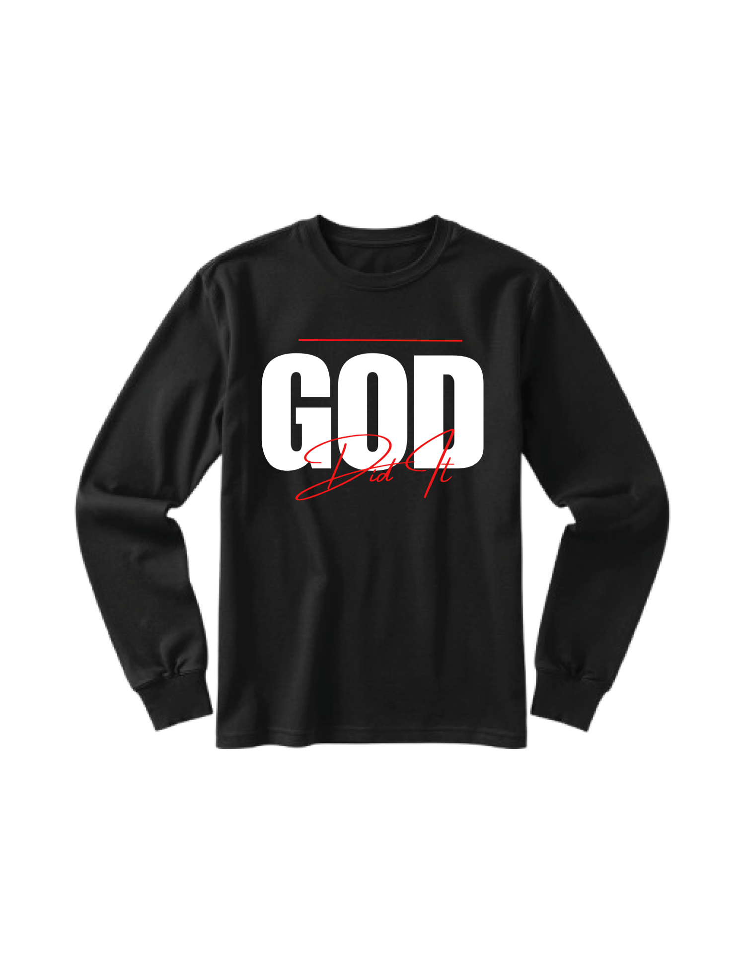 "GOD Did It" Long Sleeve Shirt – Make a bold statement with this long sleeve shirt. Crafted from heavyweight preshrunk cotton, this durable tee is designed for comfort, style, and motivation you can wear every day.