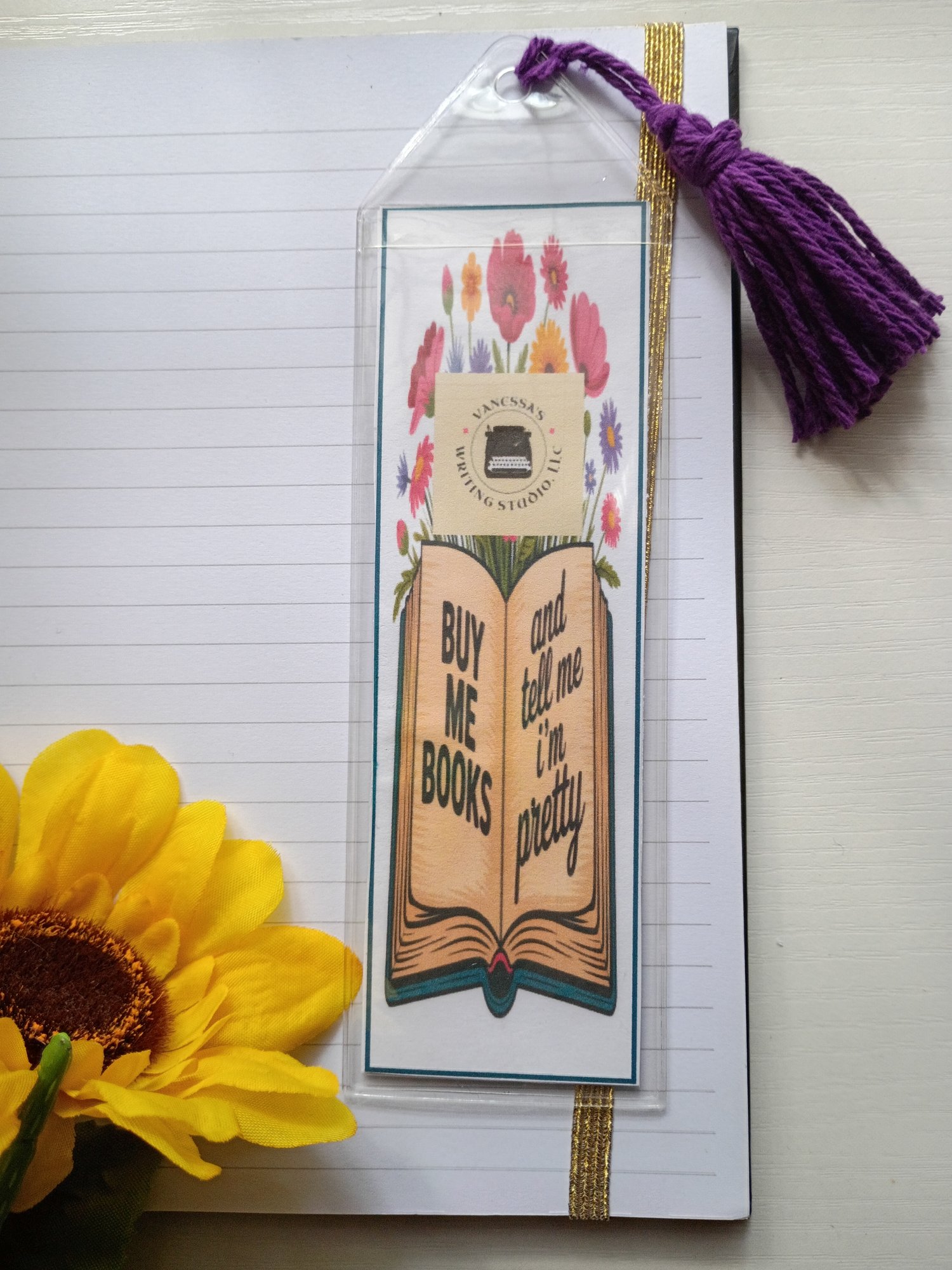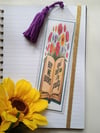 These bookmarks are placed in plastic protective sleeves, with handmade tassels attached.
