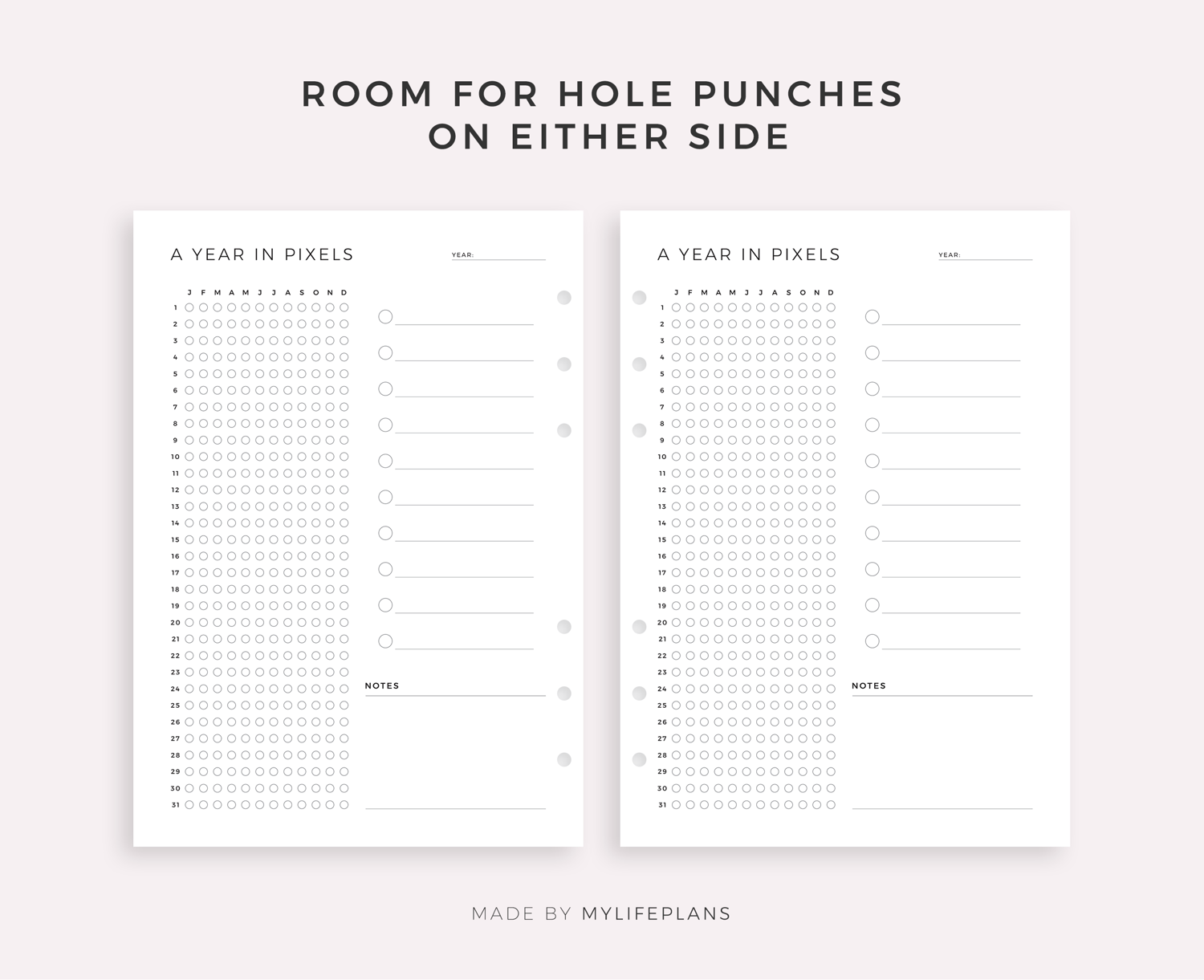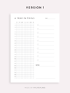 A Year In Pixels Printable - Mood Tracker, Exercise Tracker, Reading Tracker, Health Tracker, ect..