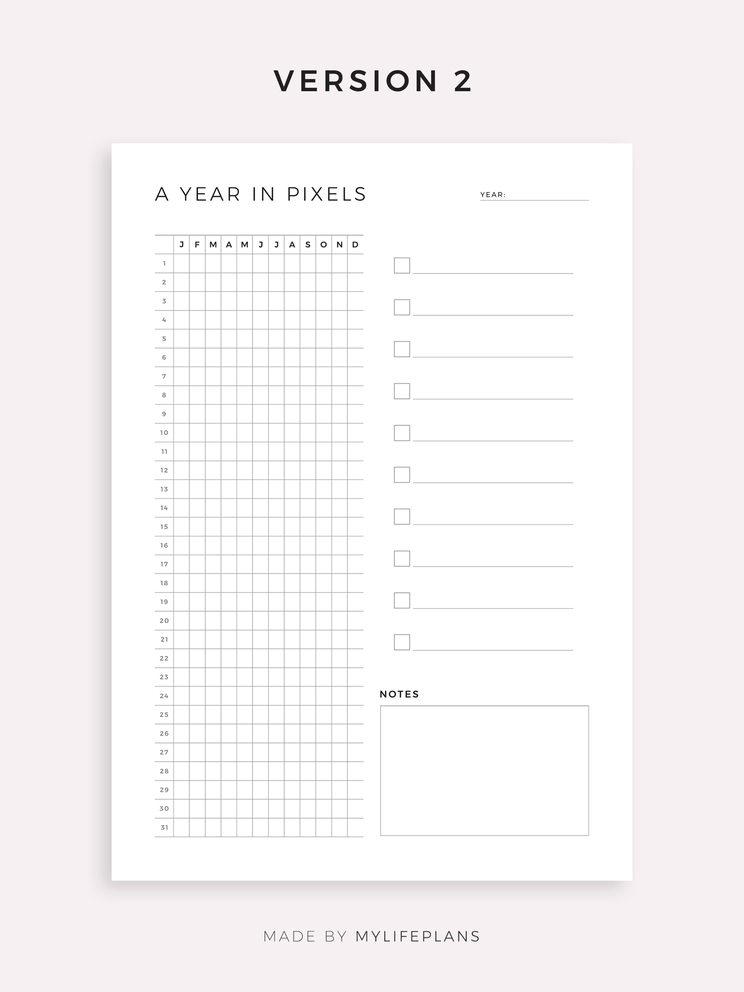 This is a printable year in pixels template — just download, print, and start using it right away.