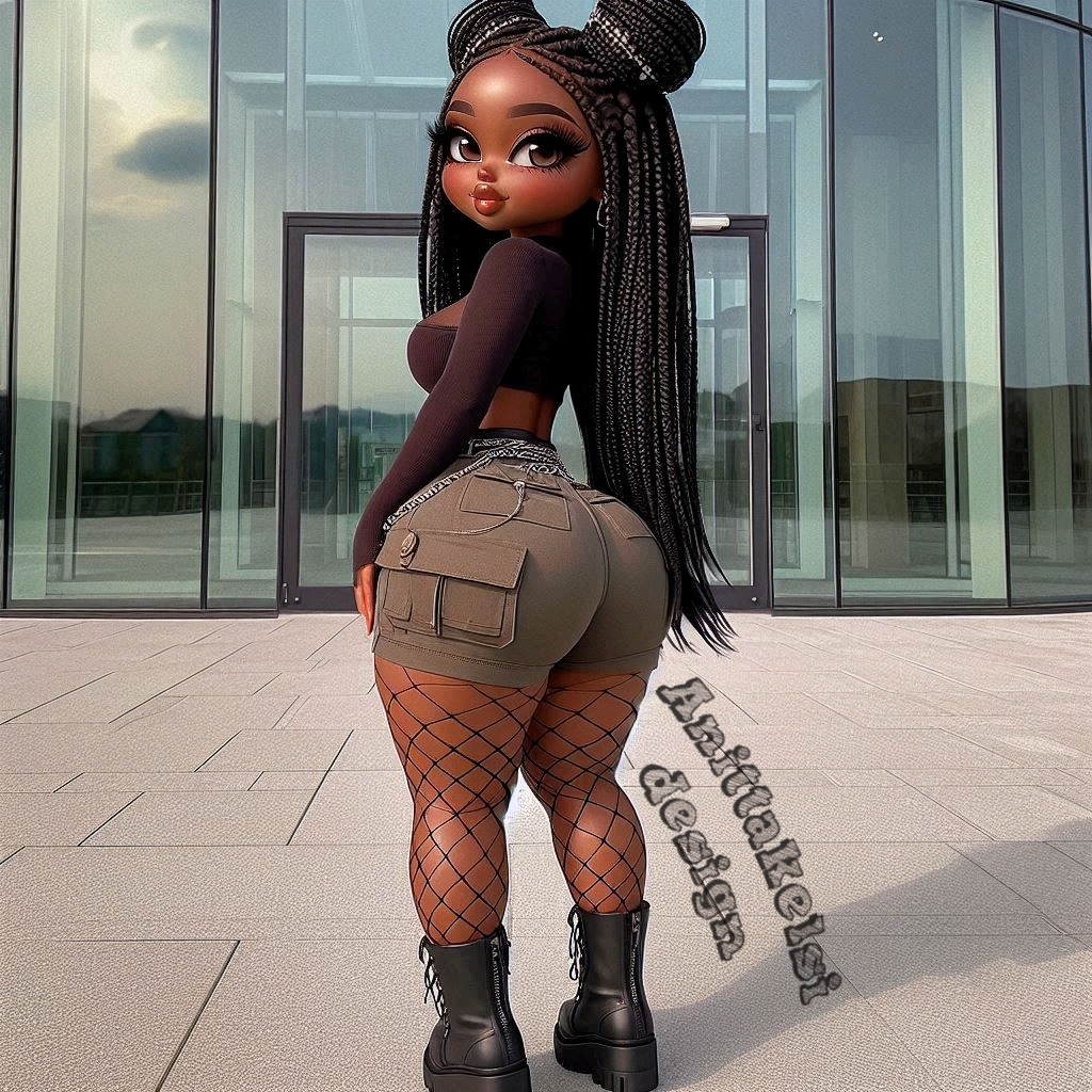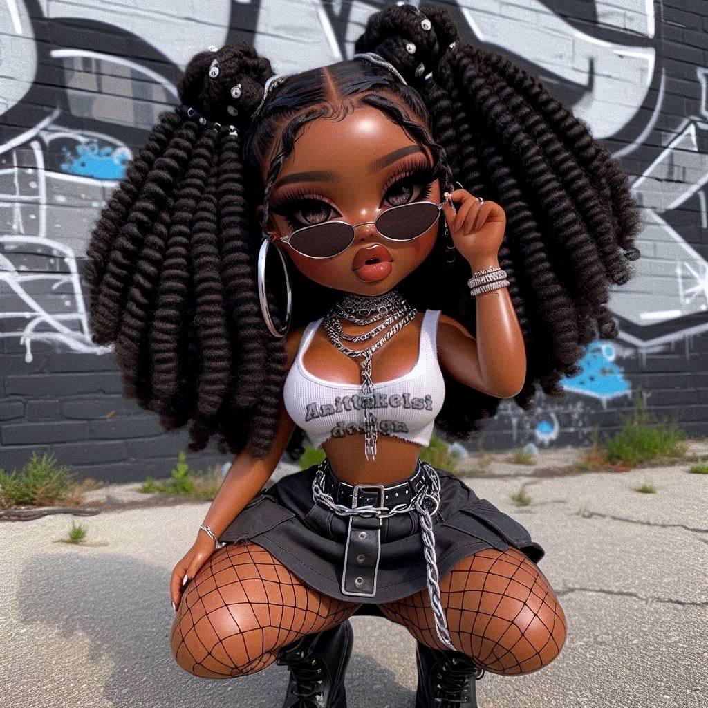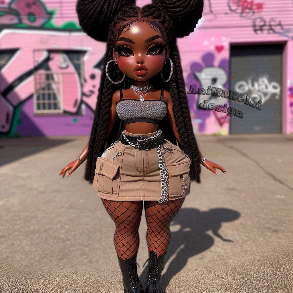 Meet this extremely cute curvy melanin chibi doll, serving street fashion and confident energy. With big sparkling eyes, glossy lips, and beautifully styled afro puff curls, she embodies both cuteness and bold personality.
