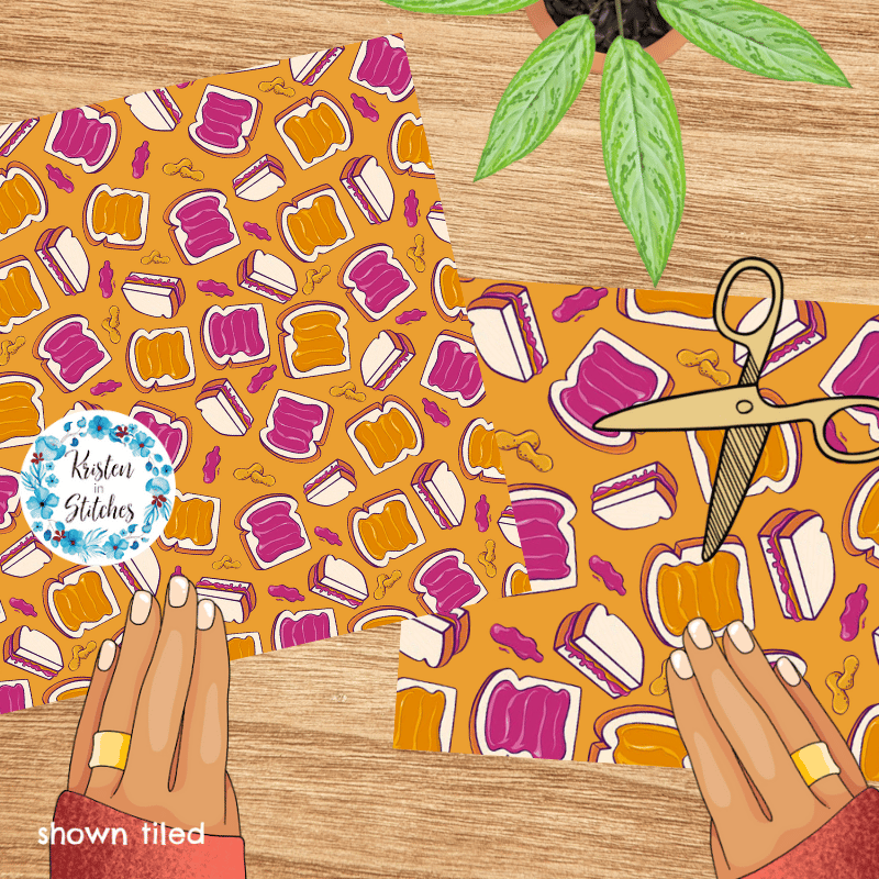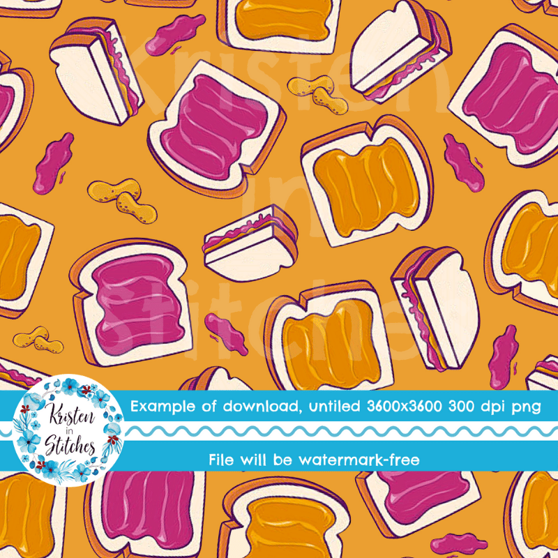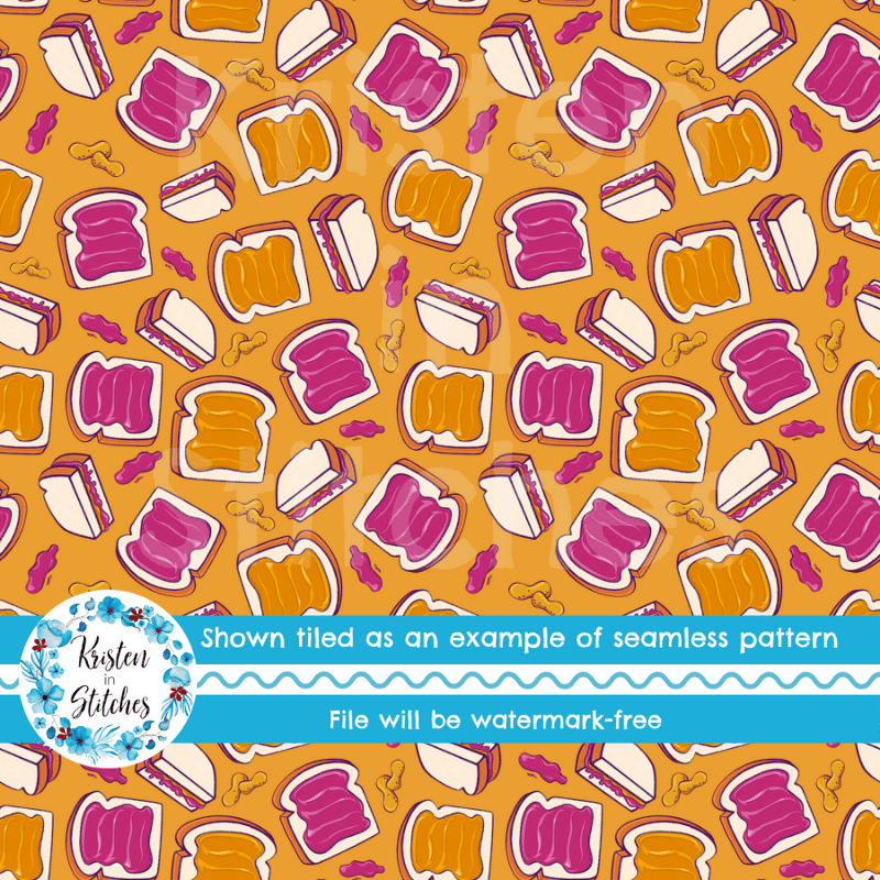 Peanut Butter and Jelly Seamless Pattern, PB&J Bread Sandwich, Gold