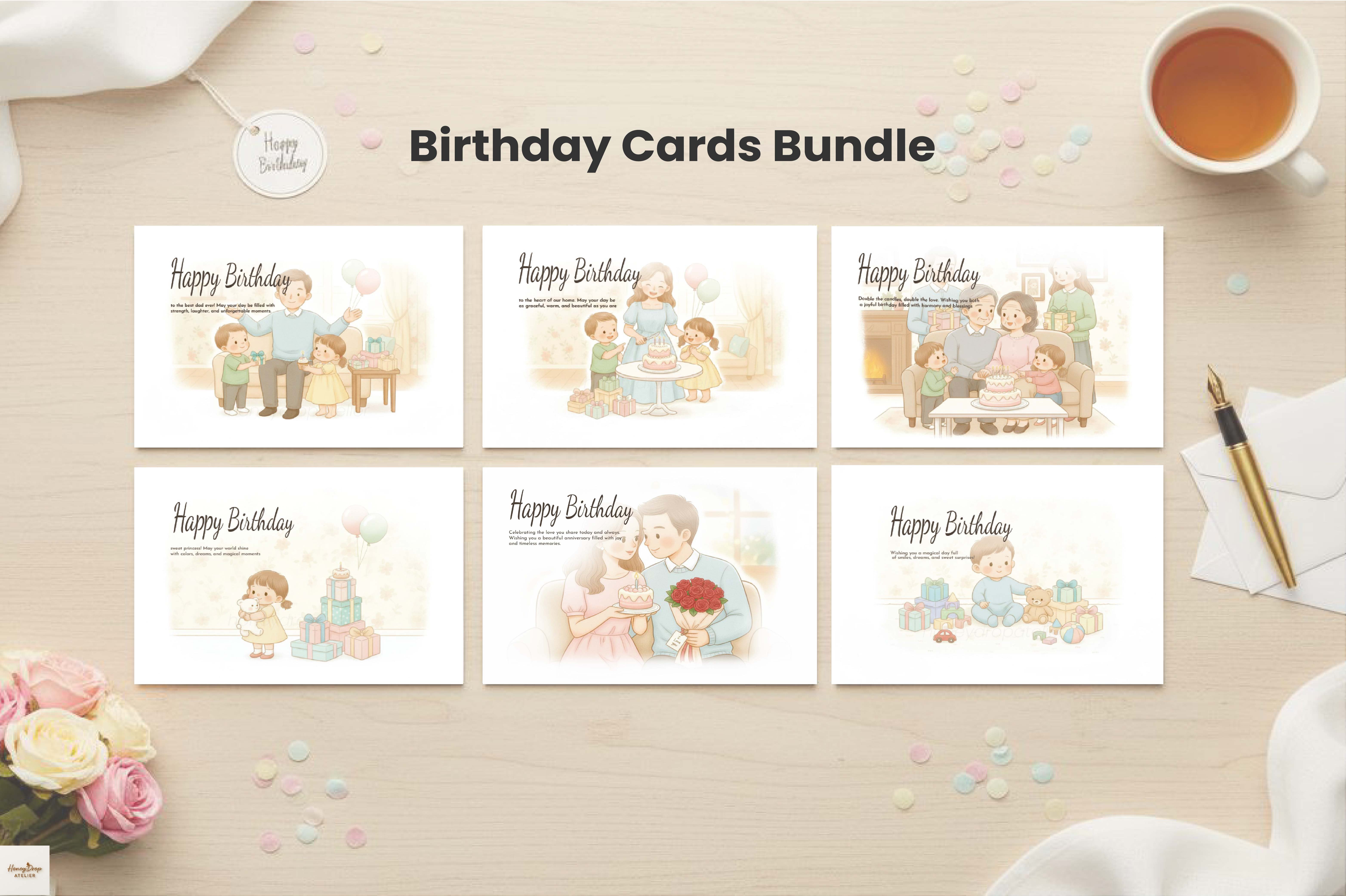 This bundle includes six unique digital birthday cards that blend warm sentiments with modern elegance.