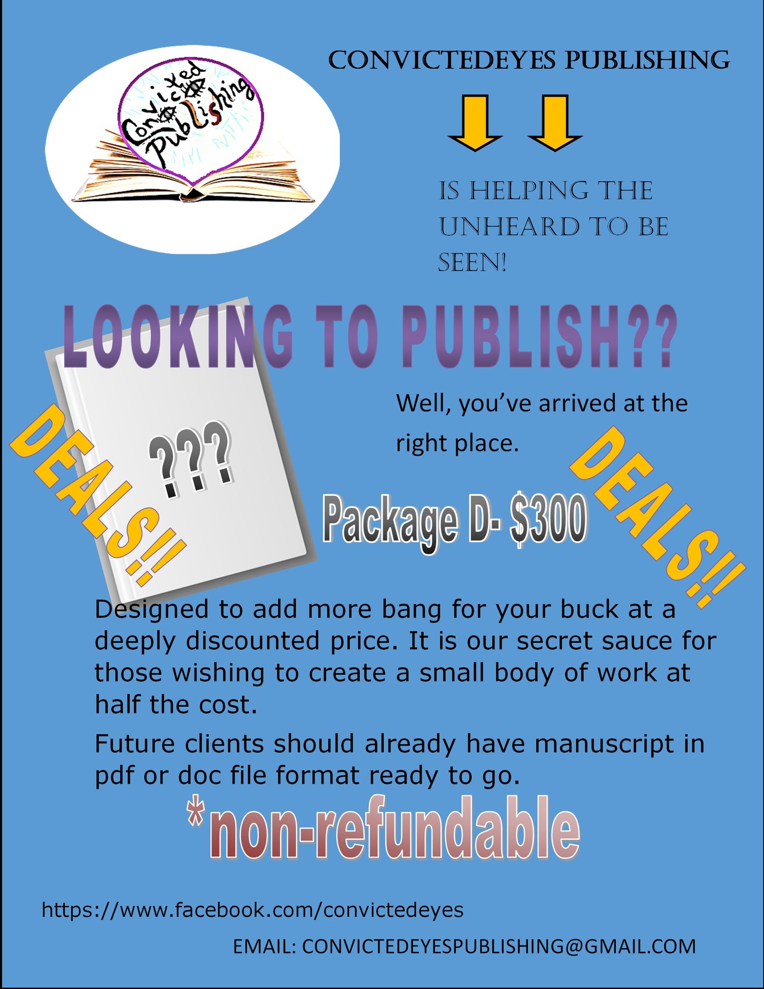 Designed to add more bang for your buck at a deeply discounted price. It is our secret sauce for those new author's wishing to create a small body of work at half the cost. Future clients should already have manuscript in pdf or doc file format ready to go. (*non-refundable)