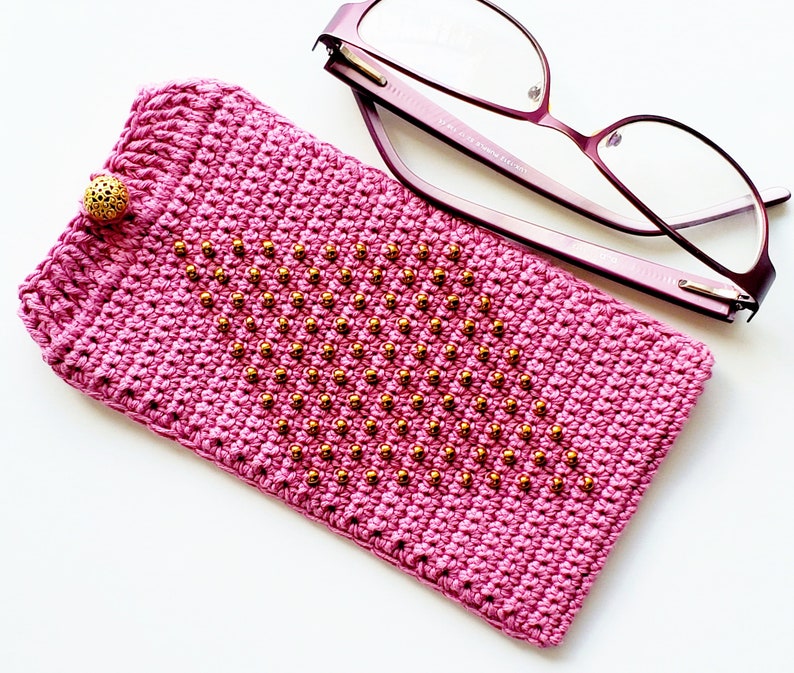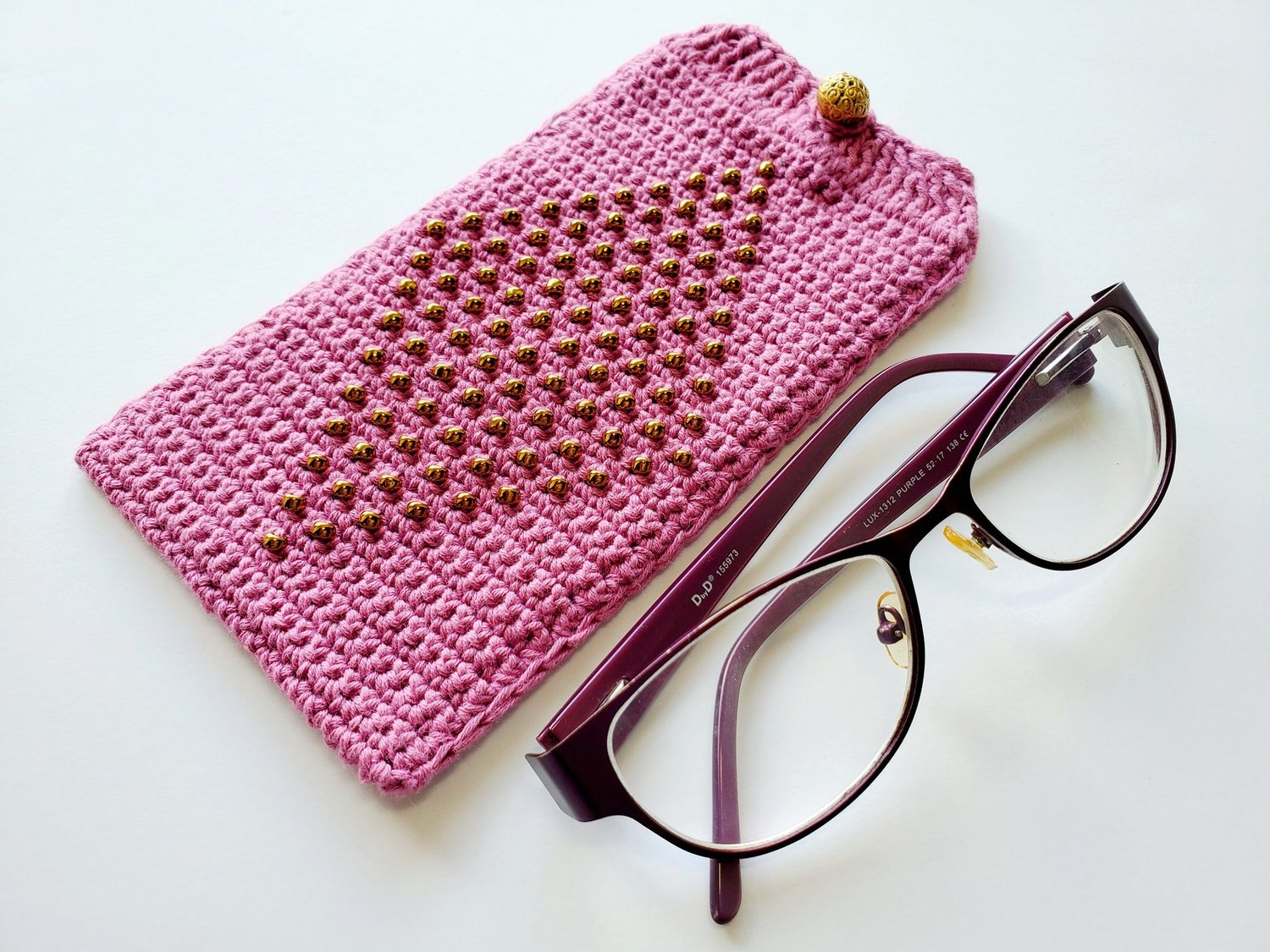 Learn to crochet with beads and make the pretty eyeglass case. It will make a nice gift for anyone as we all wear some sort of glasses these days.