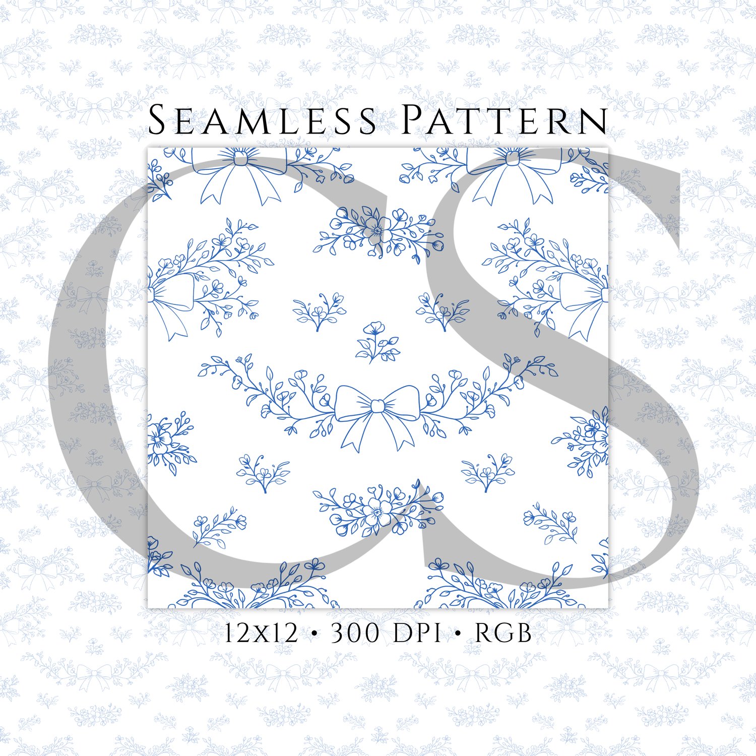 Soft, elegant, and timeless 💙 This blue floral bow seamless pattern is perfect for creating delicate, feminine designs.