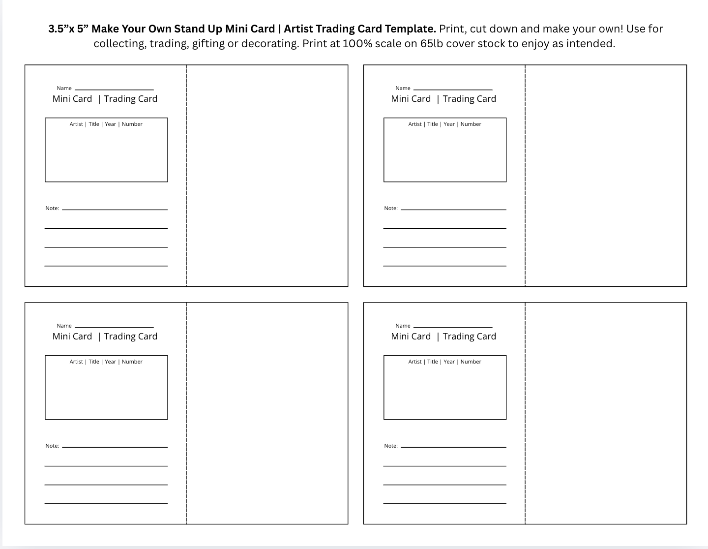 Create Your Own Mini Tent Cards/Artist Trading Cards (ATC’s) Print Sheet