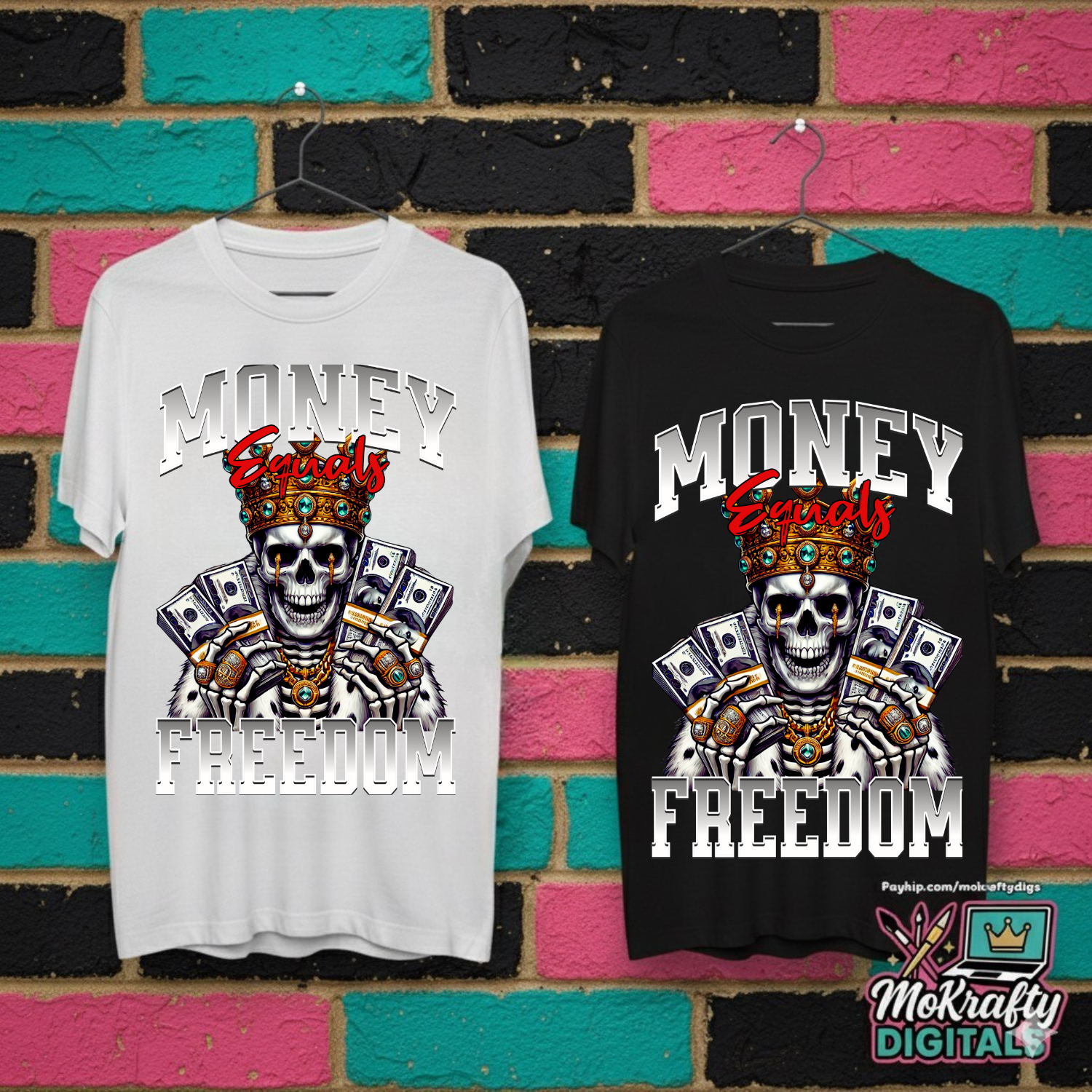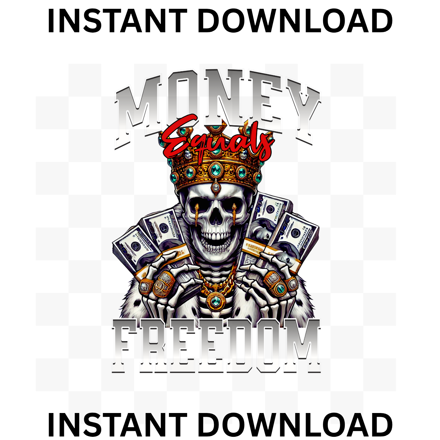 #MoneyEqualsFreedom #UrbanDesignPNG #DigitalArtDownload #SkeletonRoyalty #DTFPrintingFiles #StreetwearDesigns #CraftToCash #MakeItMoKrafty