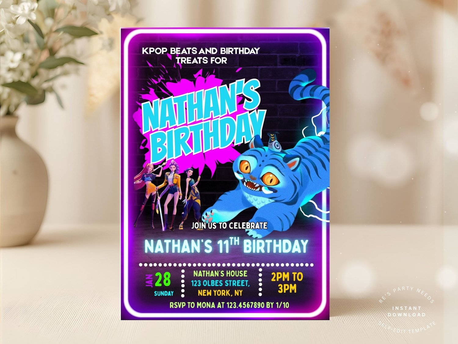 KPOP Demon Hunters Invitation EDITABLE Derpy the TigerK Pop Birthday Invitation KPOP Demon Hunters Birthday invitation K-Pop Demon Hunters