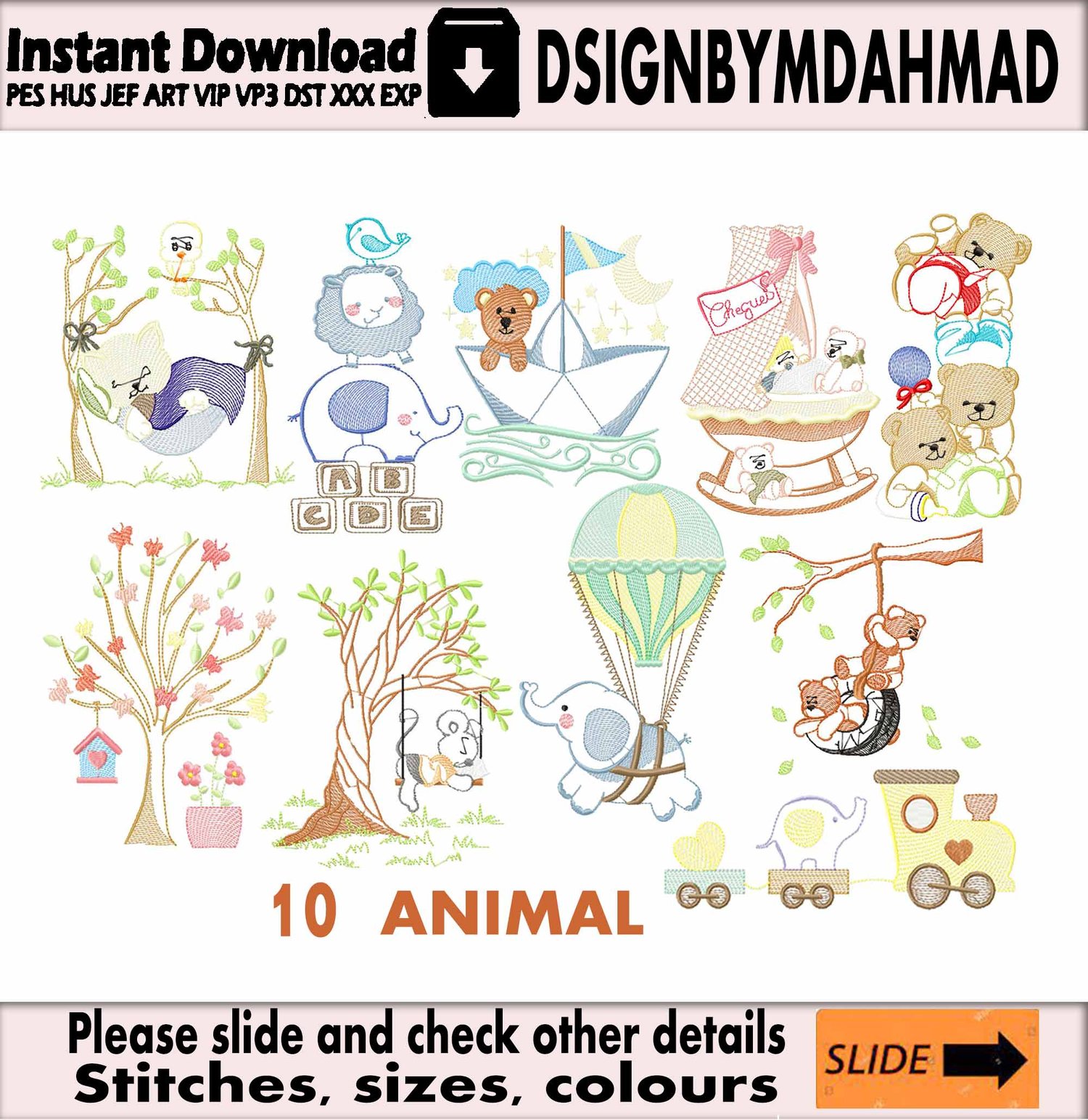 10 Animal embroidery design bundle, flower machine embroidery designs, pattern, file, embroidery, teddy bear, elephant, bird, monkey,fly,pes