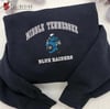 Middle Tennessee Blue Raiders NCAA College Football Team Embroidered Crewneck, Middle Tennessee College Football Embroidered Sweatshirt, NCAA Middle Tennessee Blue Raiders Team Sweatshirt, Game Day Embroidered Hoodie, T-shirt