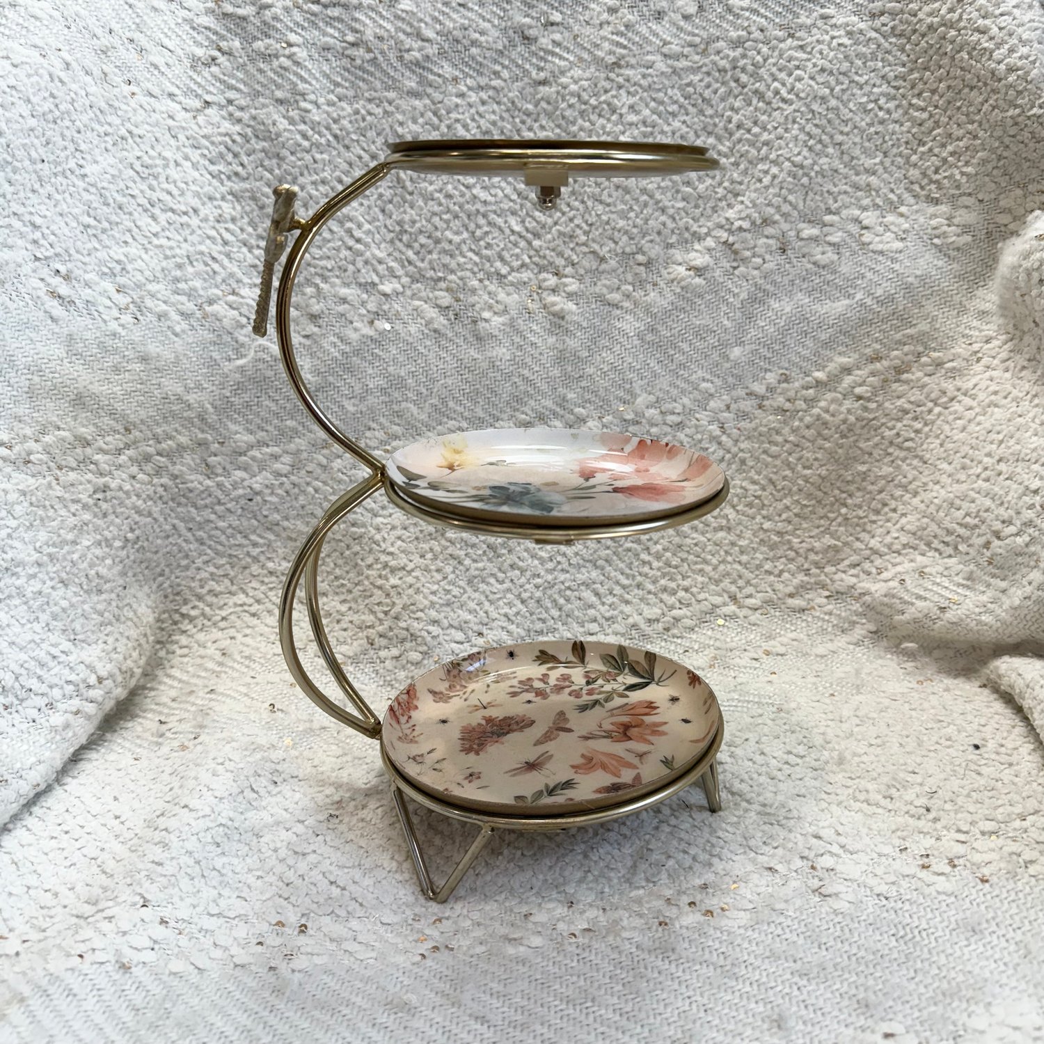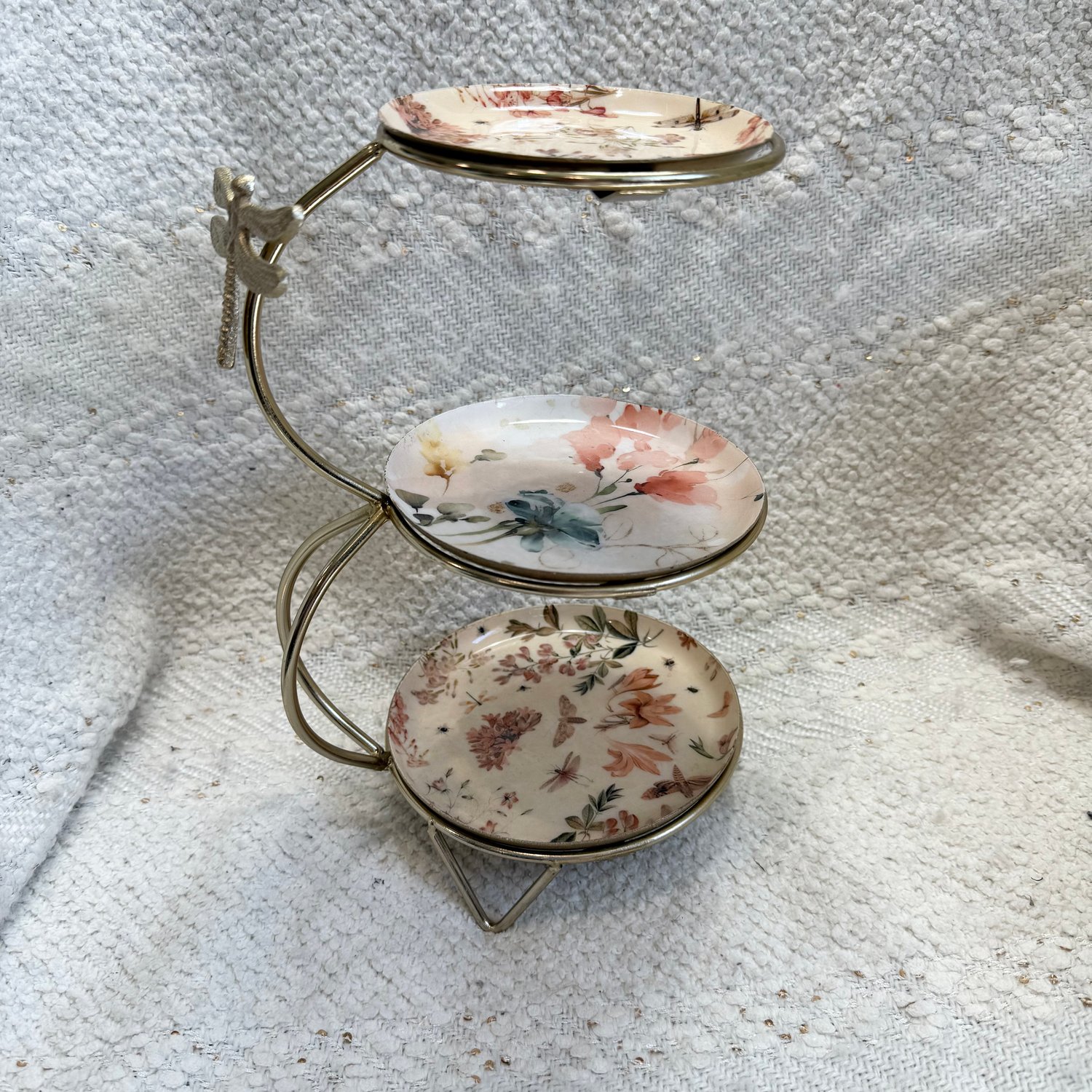 Brass 3 tier Dragonfly floral jewelry stand