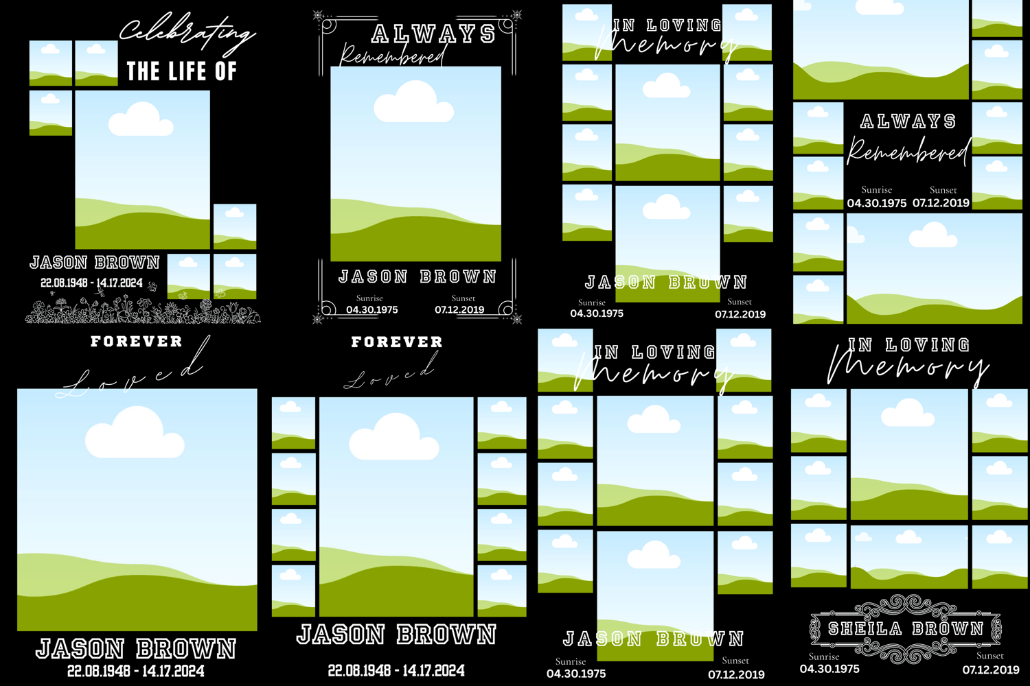 FUNERAL PHOTO COLLAGE SET BUNDLE | EDITABLE | DRAG AND DROP | MEMORIAL TEMPLATE