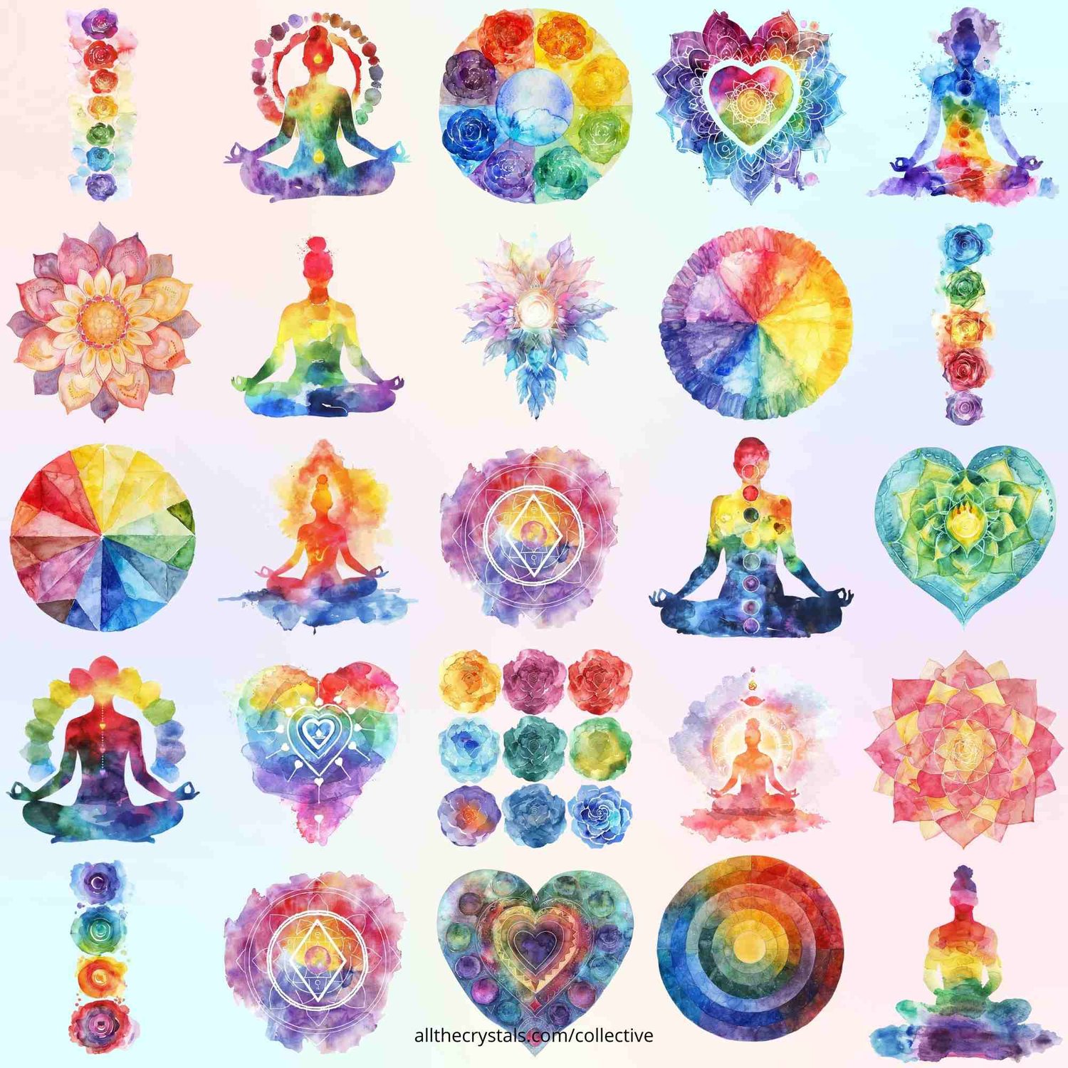 This set of 25 Chakra Energy Clip Art Images is designed to support your business with high-quality, engaging visuals that resonate with your audience. Ideal for anyone in the metaphysical, wellness, yoga, or holistic health sectors, these images help you visually communicate the concepts associated with the Chakra System.