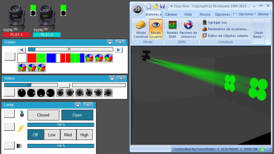 Esta Librería SSL2 está optimizada para trabajar con Magic 3d Easy View. Es decir para ver una representación 3D de las secuencias que estemos realizando con Freestyler, QLC+ o cualquier otro soft que se conecte con Magic 3d.