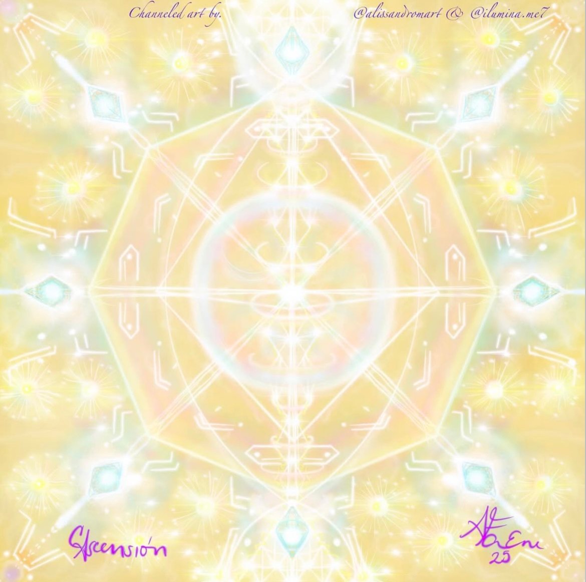 All the information of light-love codes within the channeled artworks of the Appointment with Ascension, are a collective information received in unity with each host (@pausameditationstudio, @junkdna and @thequantumlight), facilitators (@jossyhalabi, @claudiahalabi24, @ayshaluzyamor, @rositadacosta, @angelicadacostabrito) and assistants, is a channeling in unity granted by the high spheres of light ascended masters, archangels, families of light and stars; Therefore, one third of what is received in the energy exchange is reserved to continue spreading and expanding the light and knowledge of this free encounter.