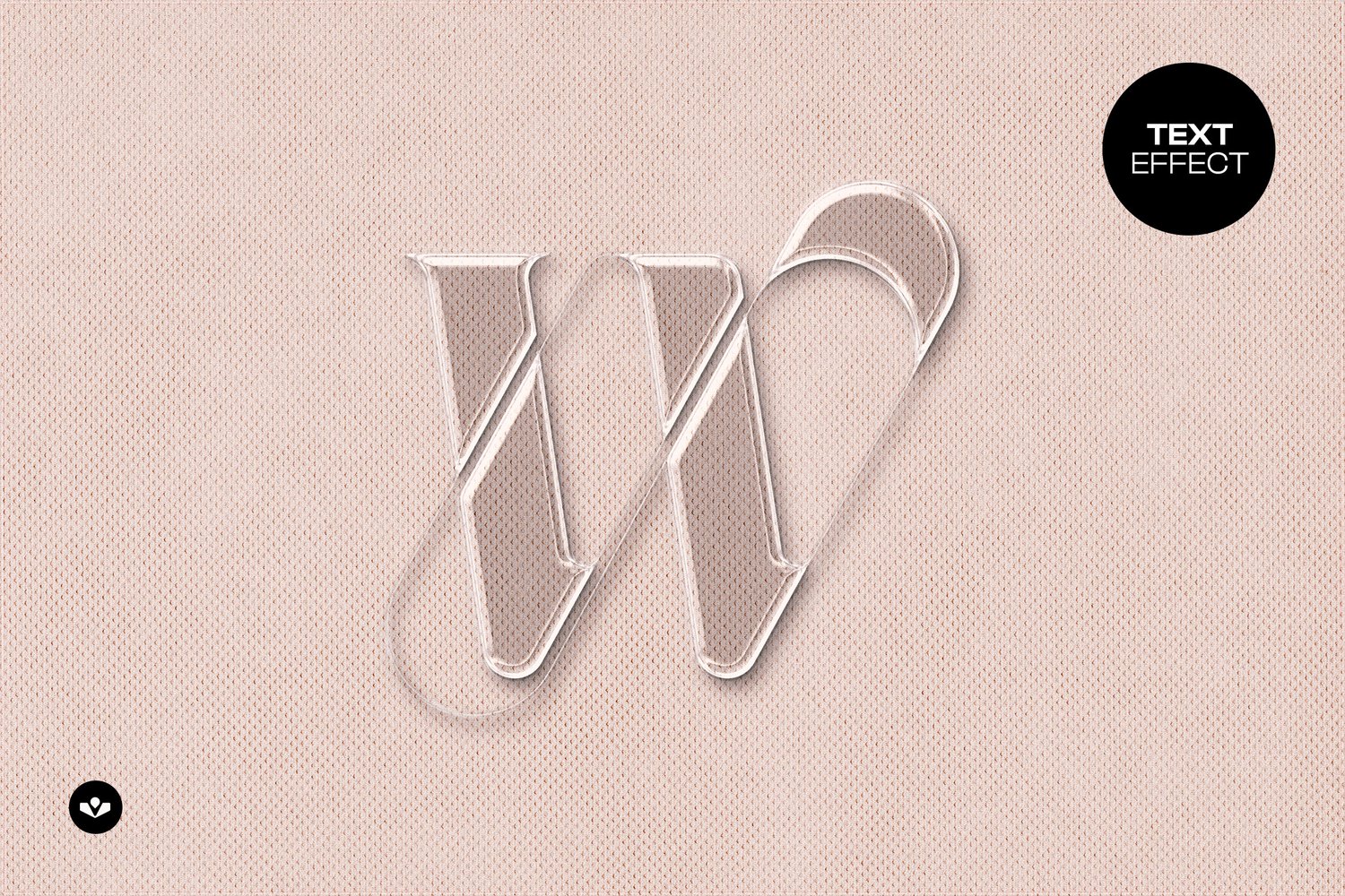 Gives the impression of a transparent or frosted acrylic material resting gently on a textured, soft-pink fabric background. The letter has smooth, translucent edges that mimic the look of polished glass or clear plastic.