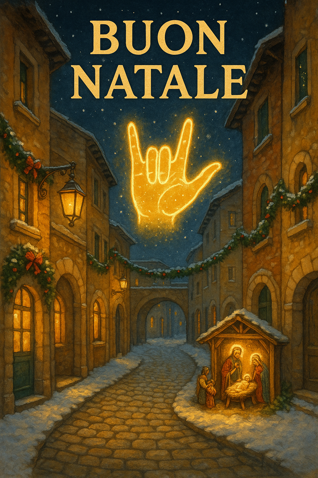 Buon Natale โ Italian Village Nativity & ASL ILY Constellation โ Printable Christmas Art (Italy Edition)