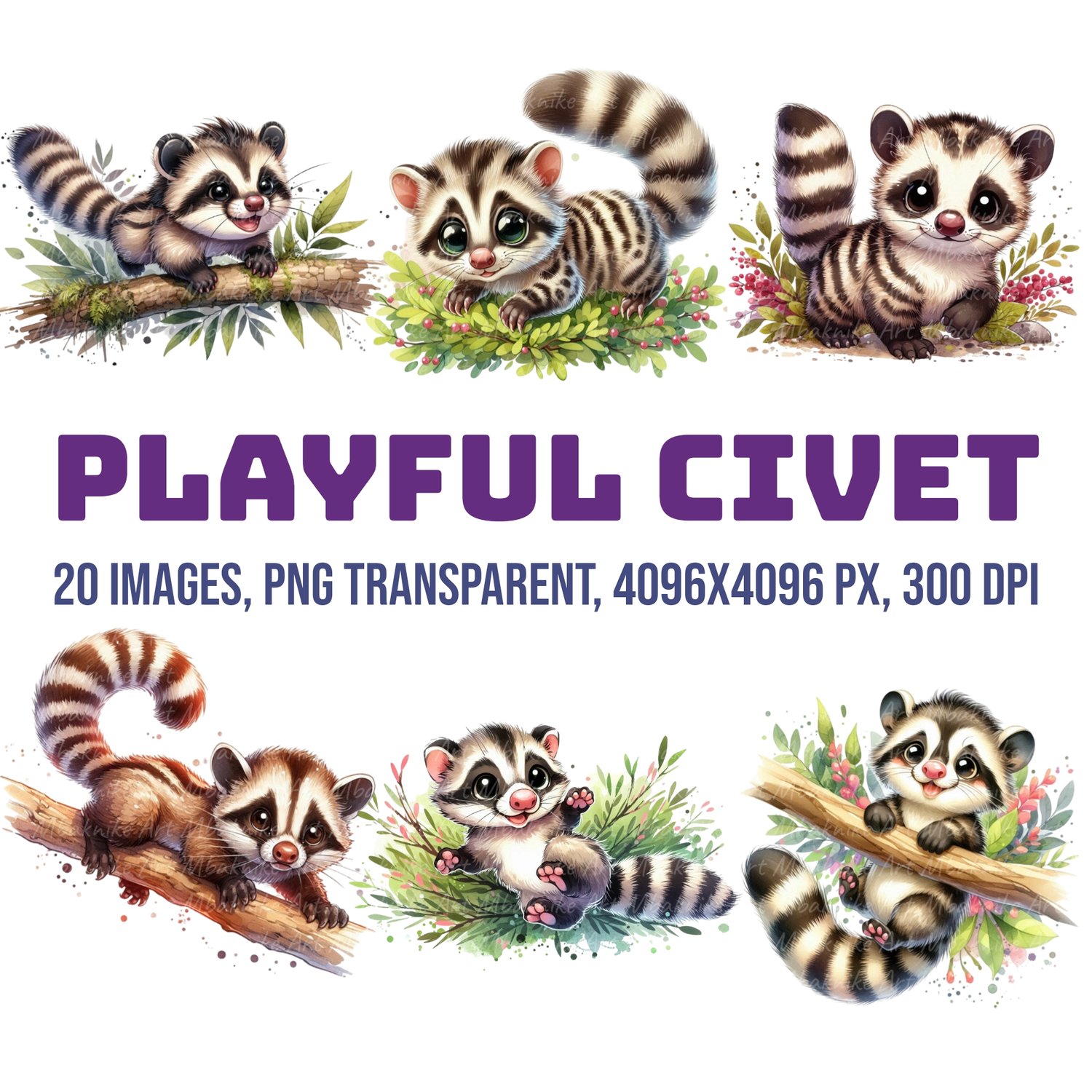 Transform your creative projects with our "Cute Playful Civet Clipart" collection! This digital pack includes 20 unique and whimsical images, each in PNG transparent format at a high resolution of 300 dpi and 4096 x 4096 px.