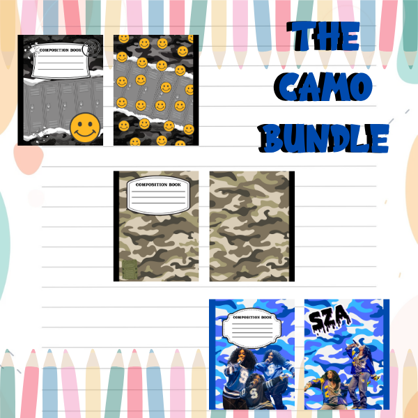 Each notebook features high-energy camo patterns with themes like SZA, camo, and smiley faces turning every page into a mission-ready moment. This comes with all 3 styles for $5.