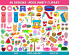 Pool Party Clipart, Summer Clipart, Pool Graphics, Swimming, Pineapple, Barbecue, Popsicles, Swimming, Fun, Birthday, Party Clipart