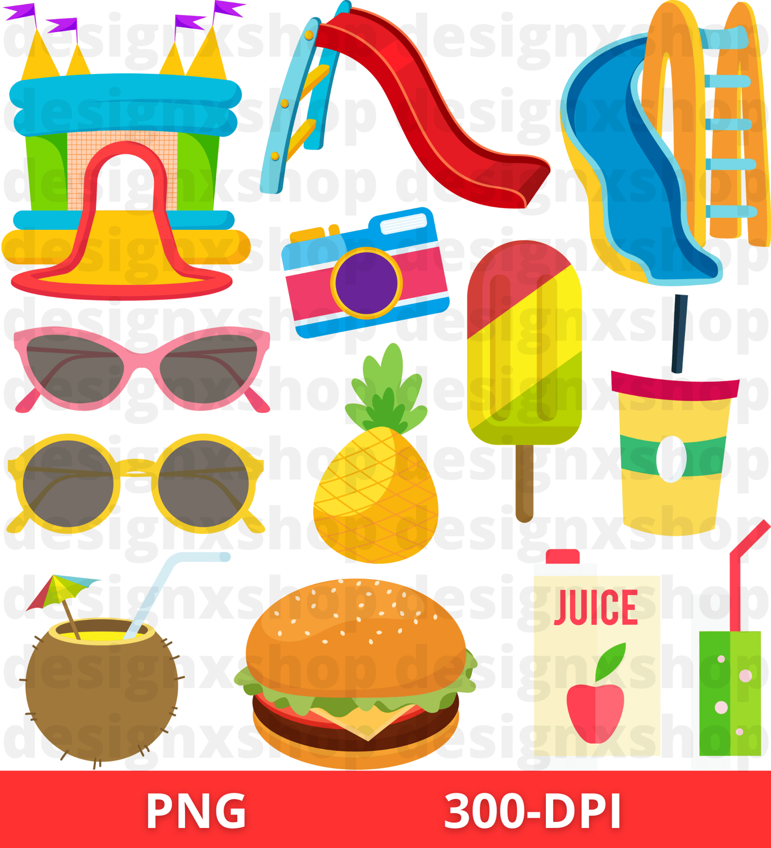 Each clip art element is saved separately as a 300 dpi PNG Images & SVG Files.