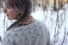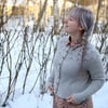 Sulo is a cute little cropped cardigan with a lace yoke. The cardigan features long sleeves with little texture at the cuffs. Sulo is worked seamlessly top down and the back of the neck is shaped a bit taller with short rows.
