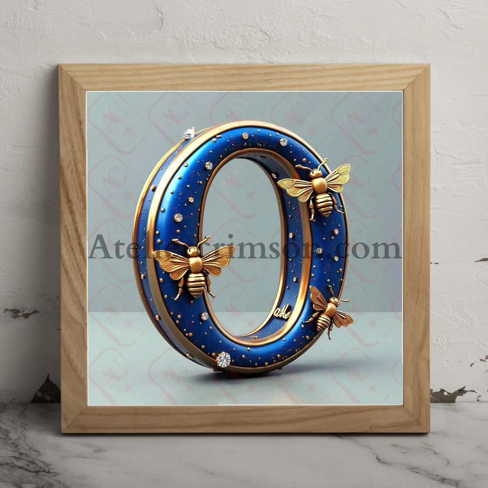The letter O royal blue bees Download Now this high quality AI-generated image, perfect for adding a touch of tranquility and creativity to any space.