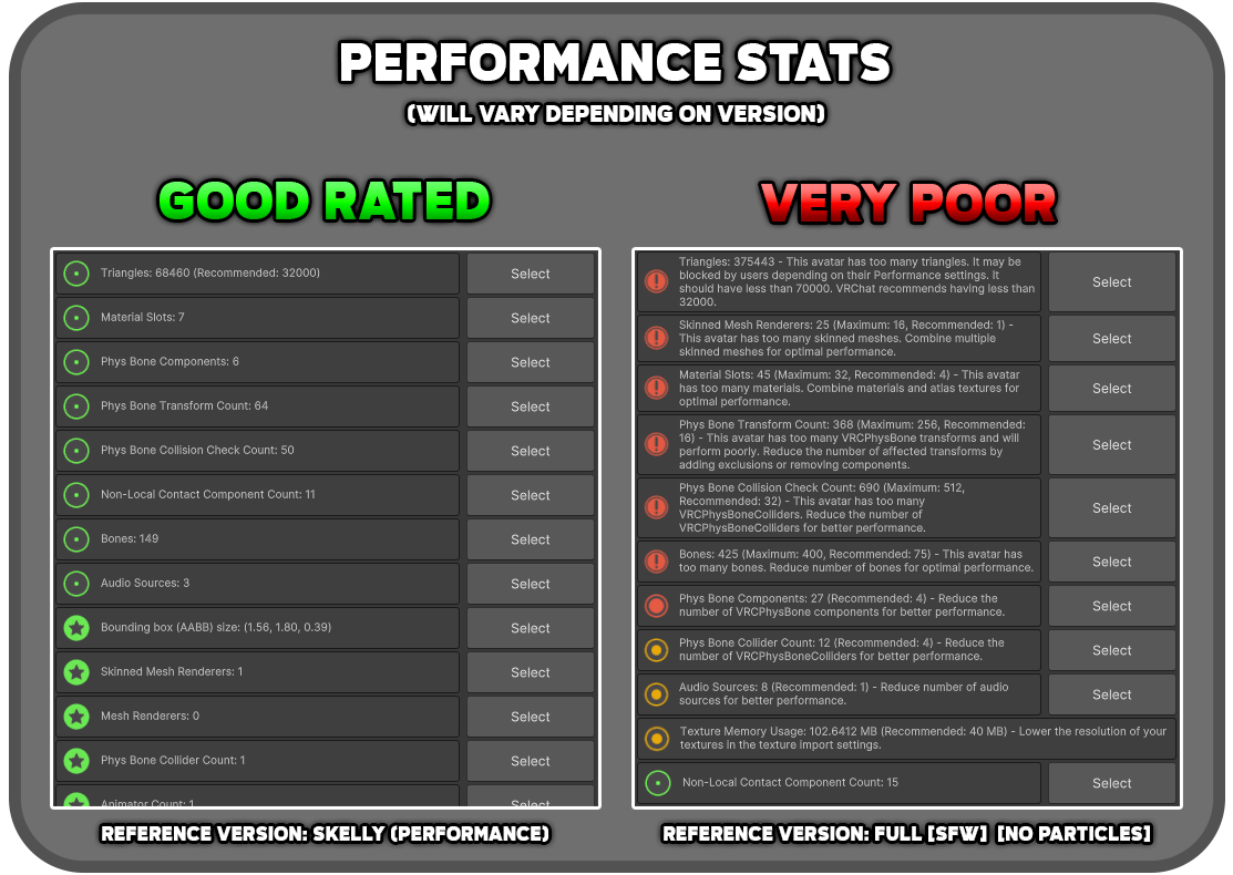 - While I’ll do my best to keep the avatar compatible with VRChat updates, I can’t guarantee fixes for issues caused by those changes.
