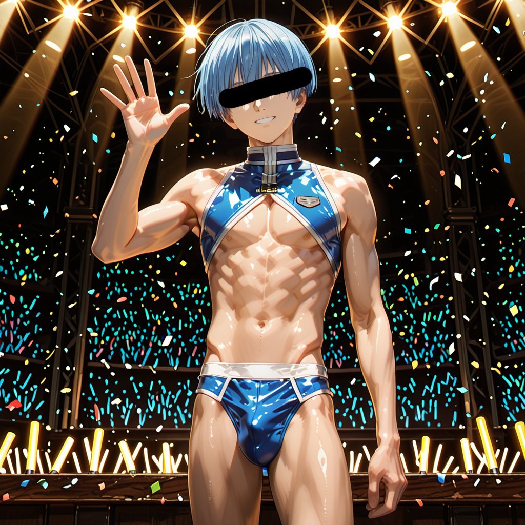 禁断のアイドルライブをテーマに、衣装は決まったワードを元にキャラクターごとにお任せ作成しました。男らしいキャラクターの魅力を思い切って表現しました。