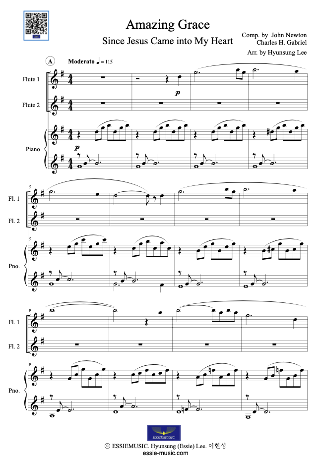 Amazing Grace for 2Flutes & Pno
