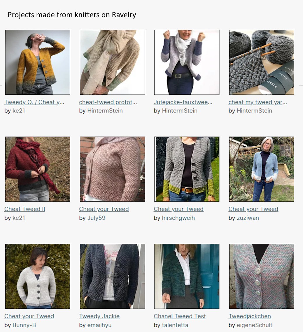 Die Cheat Tweed (Schummel-Tweed) Jacke wird nahtlos von oben nach unten gestrickt. Leichte Taillierung und Brustabnäher sorgen für eine gute Passform und 2 Versionen für die Länge lassen die Wahl für eine perfekt passende Jacke. Die ausgefeilte Schulter-Lösung garantiert gutsitzende Ärmel.