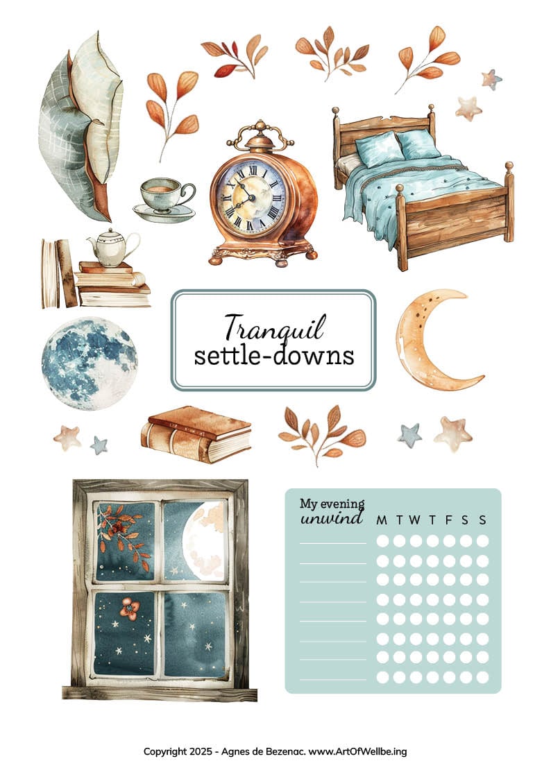 Use these pictures to craft a page of your daily morning and evening routines. Choose rituals that feel both nourishing and uplifting, those small, simple things that comfort your heart and gently stir your spirit to grow. Those are the routines that stay, the ones that last, and that carry you where you want to go.