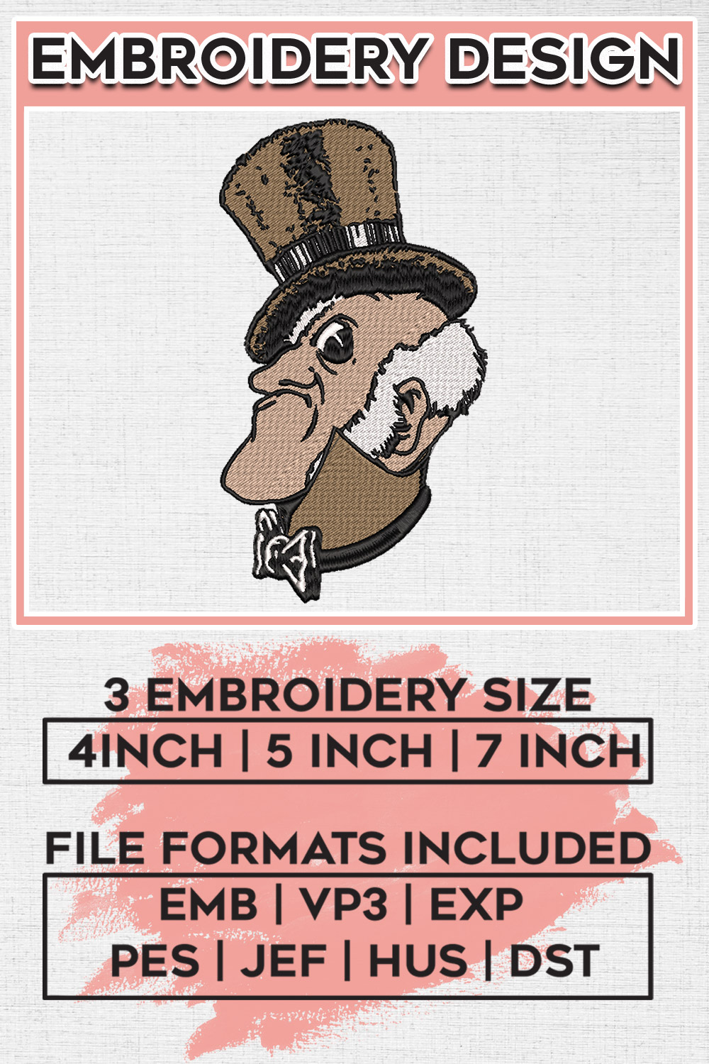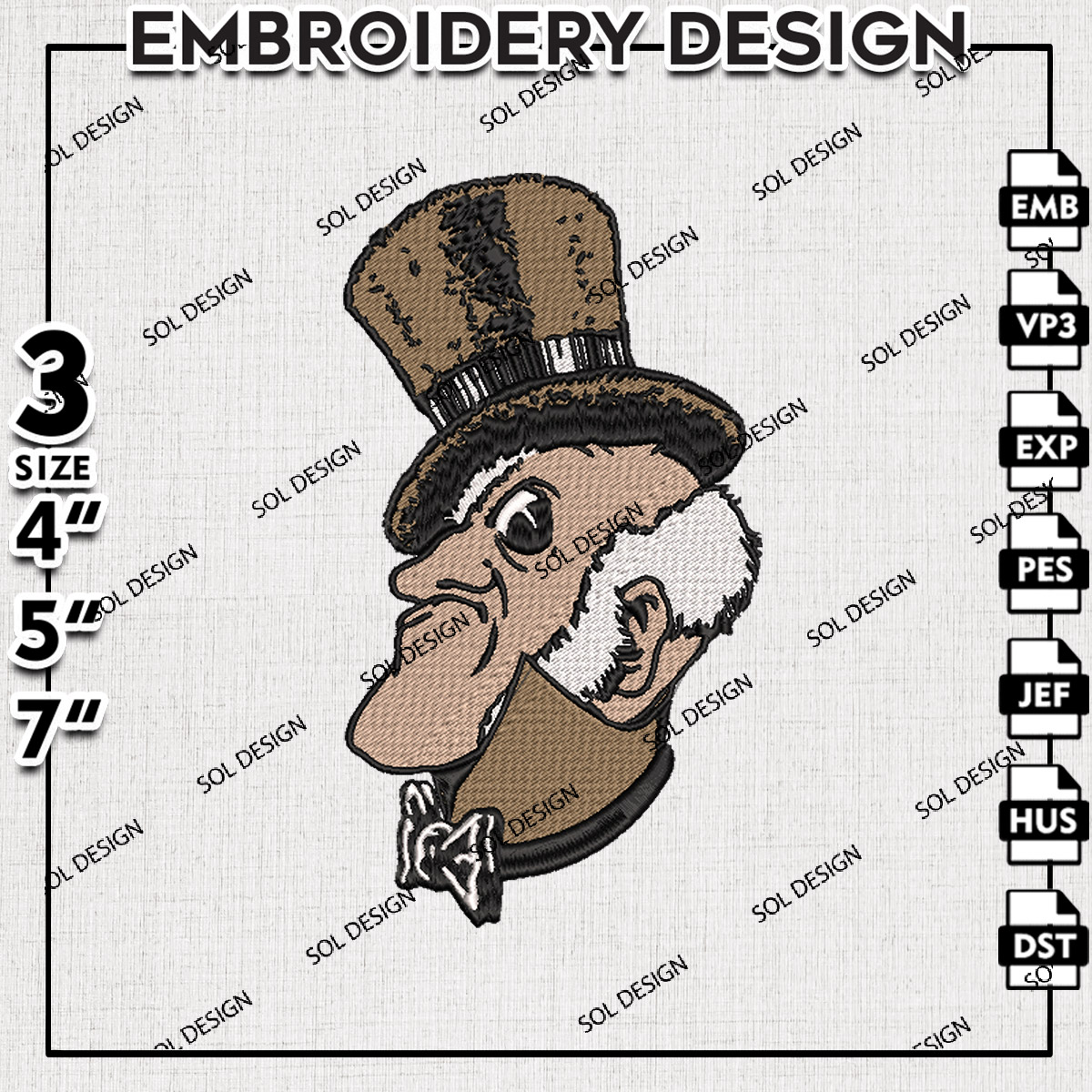 Wake Forest Demon Deacons Football Team Head Mascot Logo Embroidery Designs, NCAA Wake Forest Demon Deacons Machine Embroidery Files, NCAA Logo embroidery designs, Ncaa Wake Forest Demon Logo, Digital Download