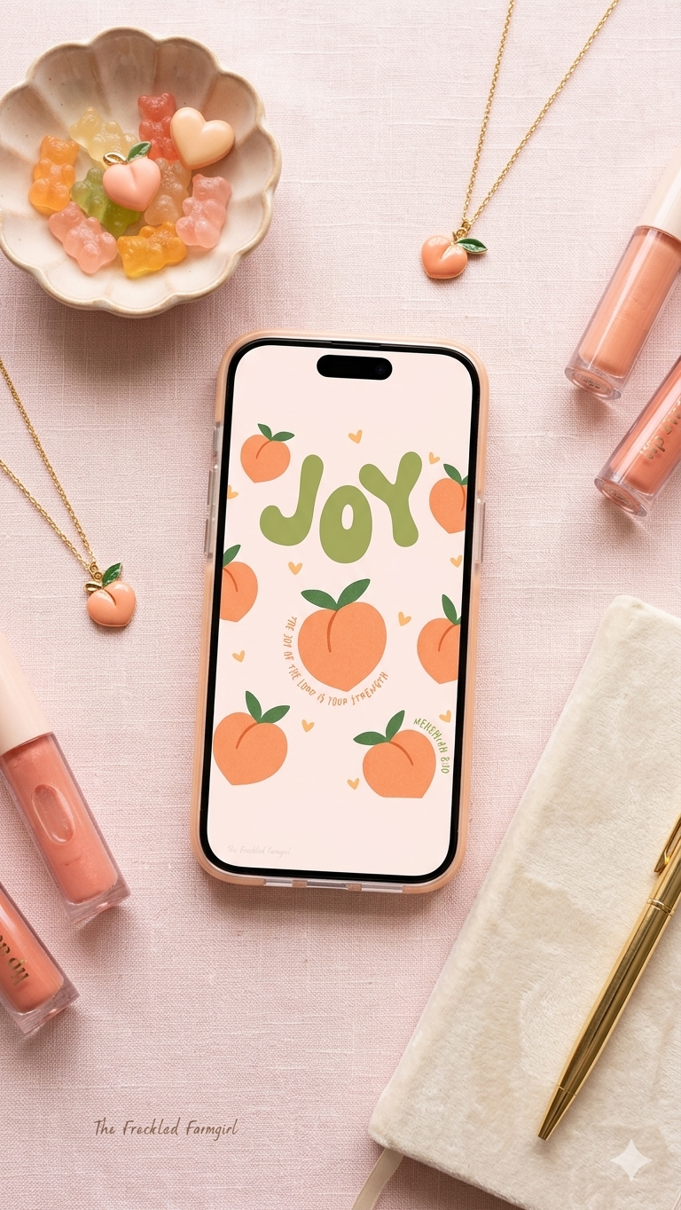 This “Joy” Christian iPhone wallpaper features a soft, feminine peach design with a cozy, uplifting aesthetic—paired with the powerful reminder that the joy of the Lord is your strength.
