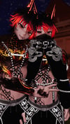 mask, horns, tail, drawing marker, cigarette, smoke on hands, trail, ball for games