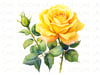 Yellow Watercolor Rose Transparent PNG Design with Bud| Watercolor Flowers| Roses | PNG Sublimation Designs, Flower Prints