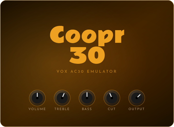 The chime, the shimmer, the grit — all of it. Coopr 30 models the legendary Vox AC30 from input to output with EF86/ECC83 channel modeling, Class A EL84 power amp with supply sag, and a full built-in pedalboard with 10 effect types.