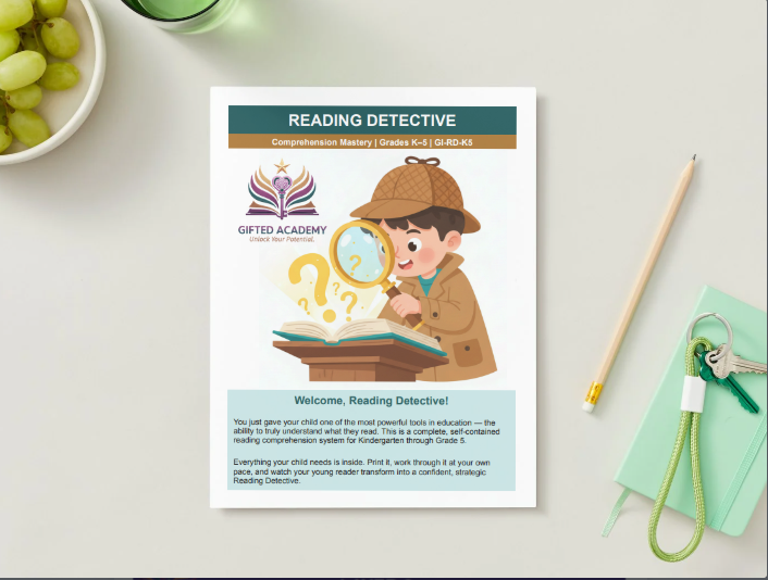 Reading Detective: Comprehension Mastery teaches K–5 students five essential skills that turn word-readers into true readers — main idea, inference, vocabulary in context, author's purpose, and the difference between decoding and comprehension.