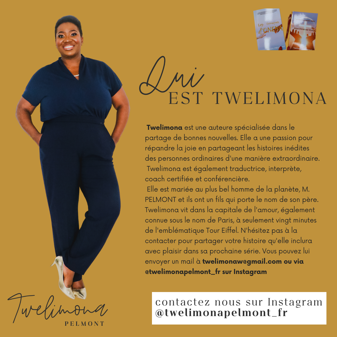 Je m'appelle Twelimona PELMONT, je suis l'auteur de 5 livres en anglais et en français dans 15 formats différents.