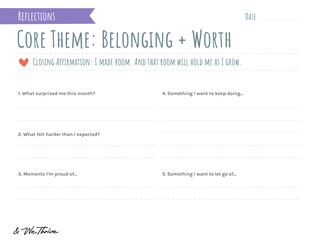 Belonging + Worth is a 4-week guided healing calendar designed to help you gently examine the roots of self-doubt and rebuild a sense of worth that isn’t tied to performance, approval, or productivity.