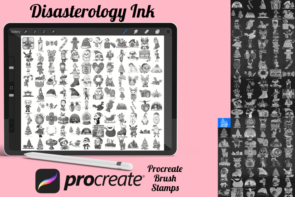 Pack of 108 Christmas Procreate Stamp Brushes! These Christmas winter stamps are perfect for making illustration projects or any procreate purpose. You can use these in any colour or opacity and they can be resized to best fit your art. You need Procreate 5.0.8 or 5X, an iPad, and an Apple Pencil. Also, these stamp brushes are not pressure sensitive and can be used with third party stylus, Apple Pencil or even your finger. You can change the colour, size and opacity of these stamps.