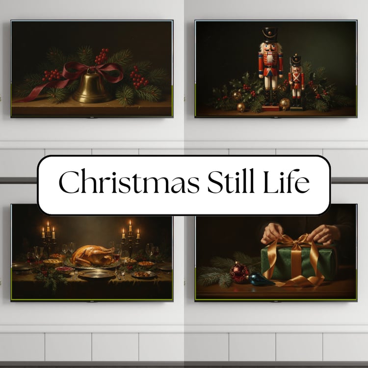 This Victorian gingerbread house Christmas still life captures the warmth and charm of a classic holiday scene. Featuring candlelight, spices, sweets, and a beautifully detailed gingerbread house, this vintage-style artwork evokes timeless Christmas nostalgia. Perfect for Samsung Frame TV displays or elegant seasonal wall décor. Delivered as a high-resolution digital download for instant holiday styling.