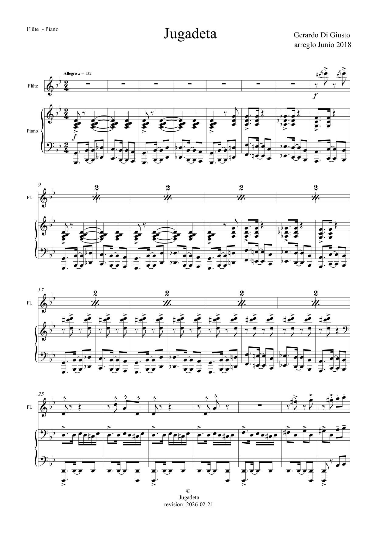 Jugadeta version Flûte - Piano