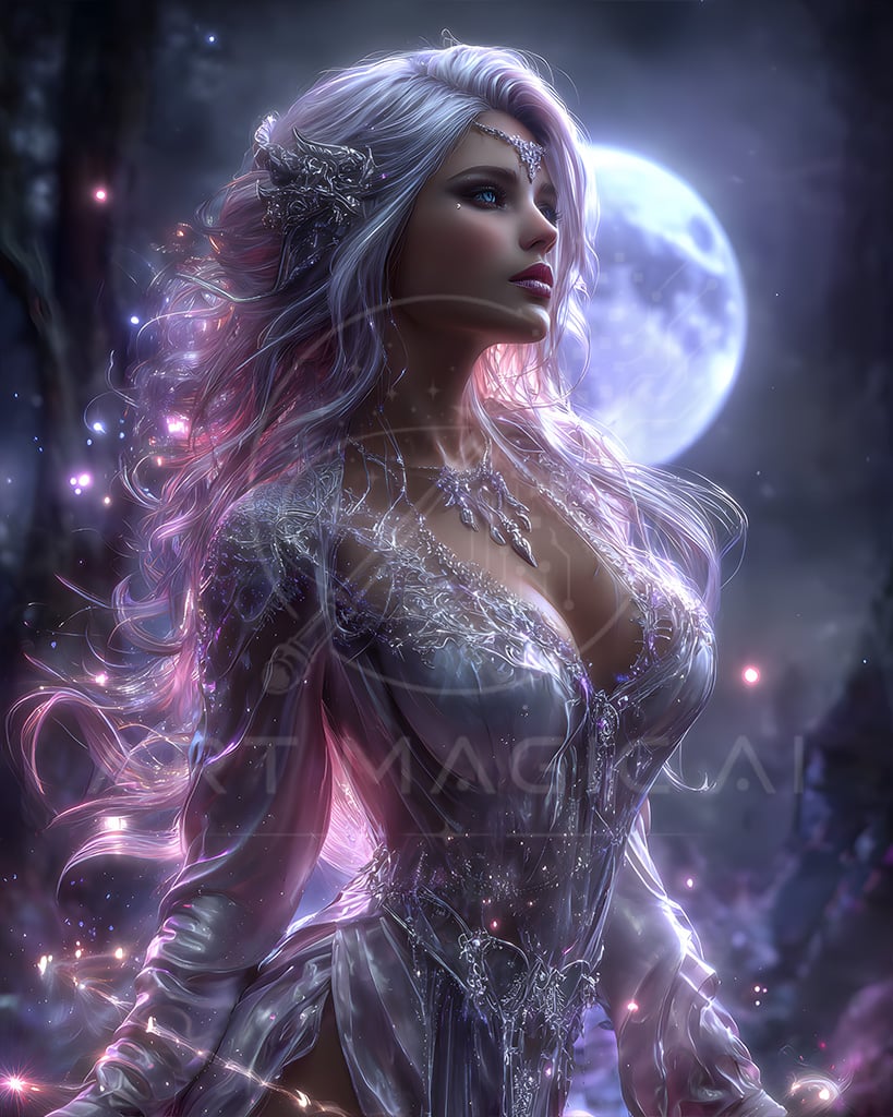 Step into a world of celestial beauty and quiet magic with this exclusive fantasy art print. Designed with a luminous, ethereal aesthetic, this piece captures a moment of mystery, elegance, and enchantment—perfect for elevating any space.