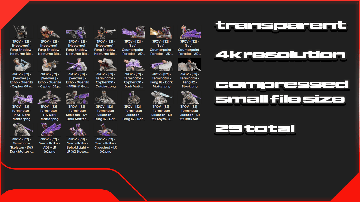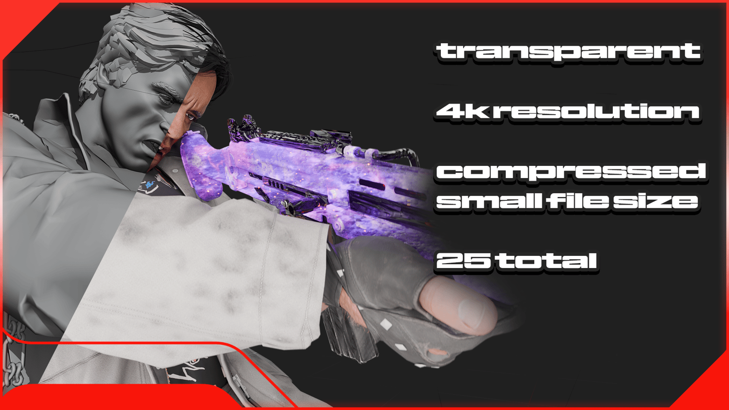 This USB drive features over 25 high-quality 4K renders with transparent backgrounds, perfect for GFX, thumbnails, and other graphic design projects. Each render has been meticulously crafted to deliver sharp details and seamless integration into your designs. Whether you're a content creator, streamer, or designer, this collection will elevate your visuals to the next level.